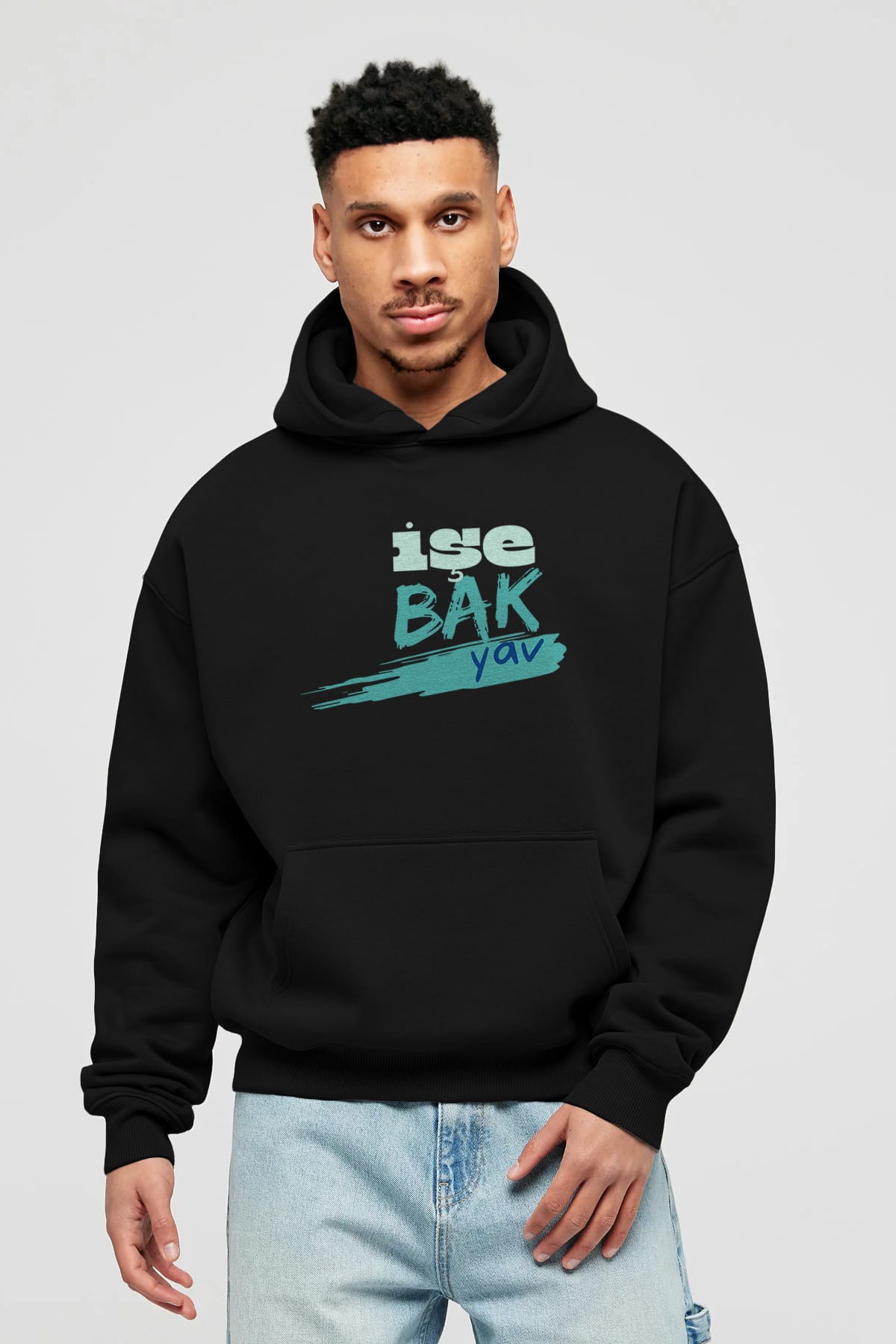 işe Bak Yav Yazılı Ön Baskılı Oversize Hoodie Kapüşonlu Sweatshirt Erkek Kadın Unisex