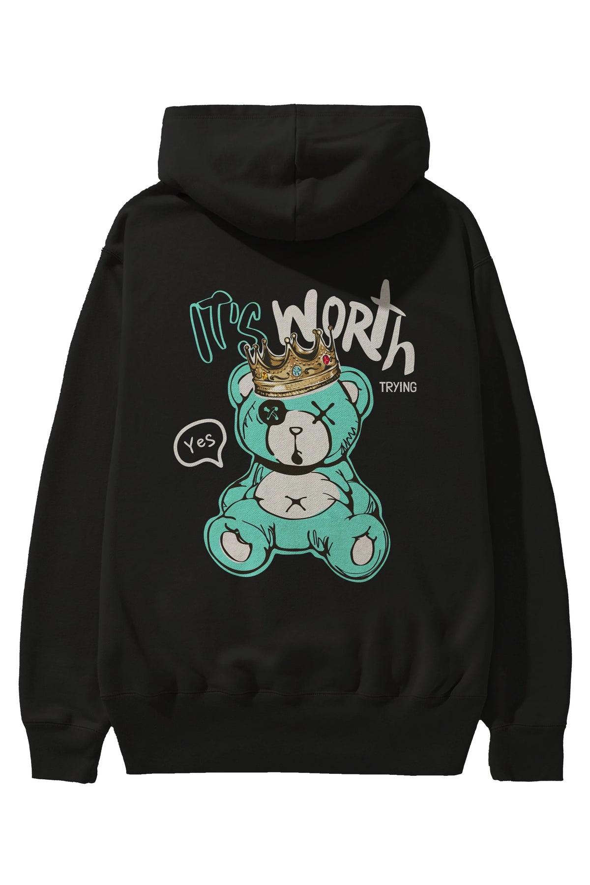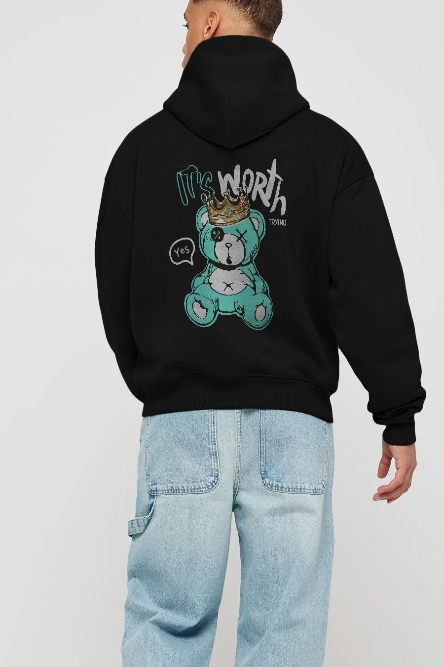 its Worth Trying Bear Arka Baskılı Hoodie Oversize Kapüşonlu Sweatshirt Erkek Kadın Unisex