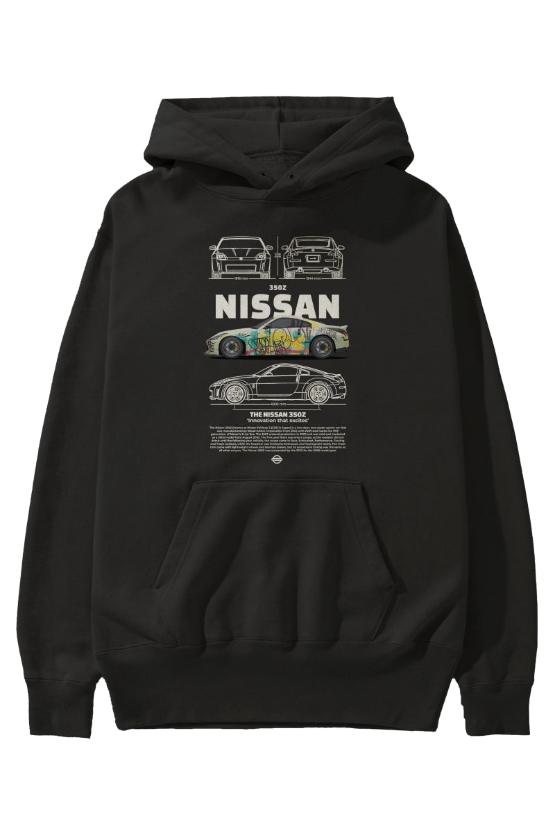 nissan 350z 2 Ön Baskılı Hoodie Oversize Kapüşonlu Sweatshirt Erkek Kadın Unisex