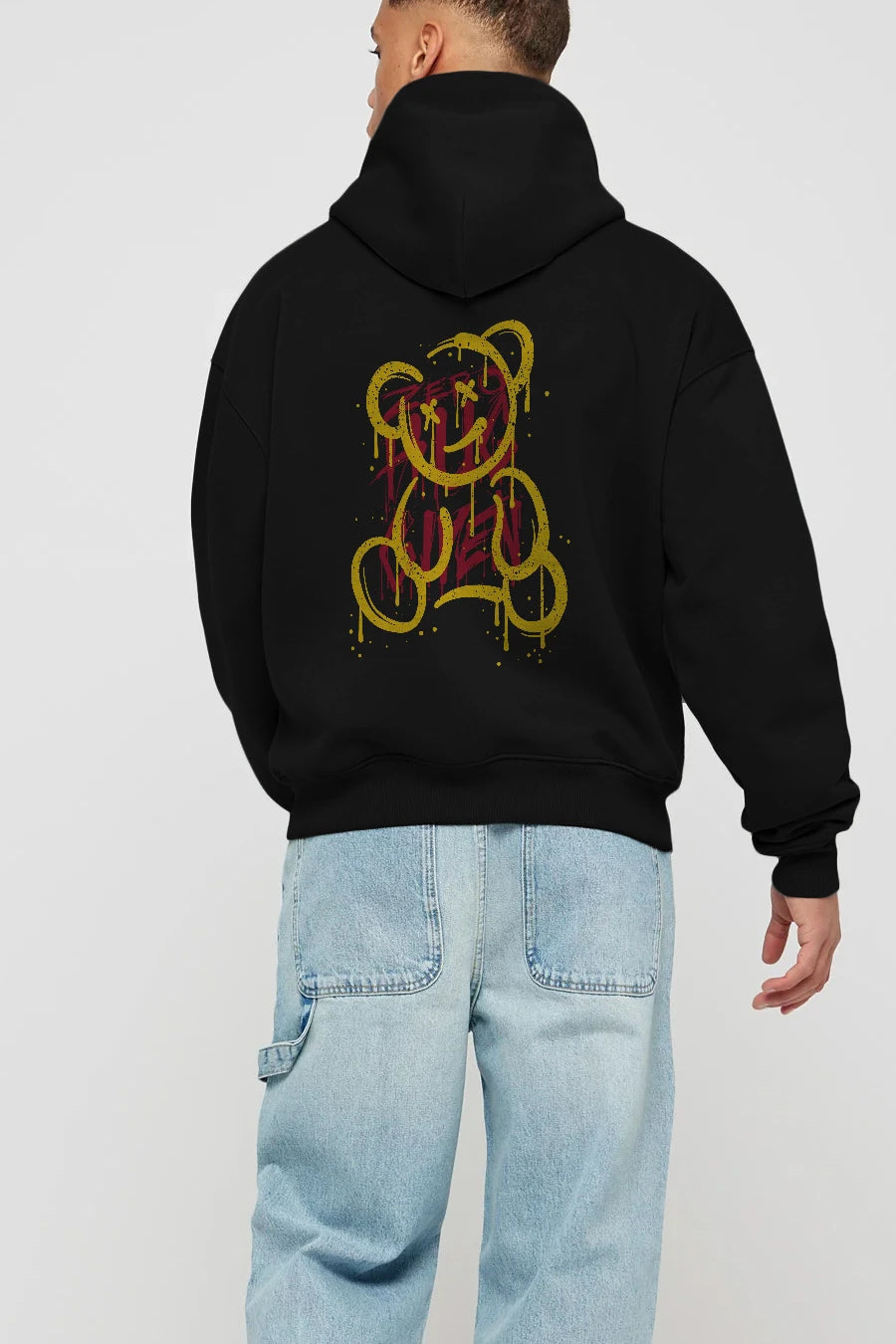 Zero Hug Bear Arka Baskılı Hoodie Oversize Kapüşonlu Sweatshirt Erkek Kadın Unisex