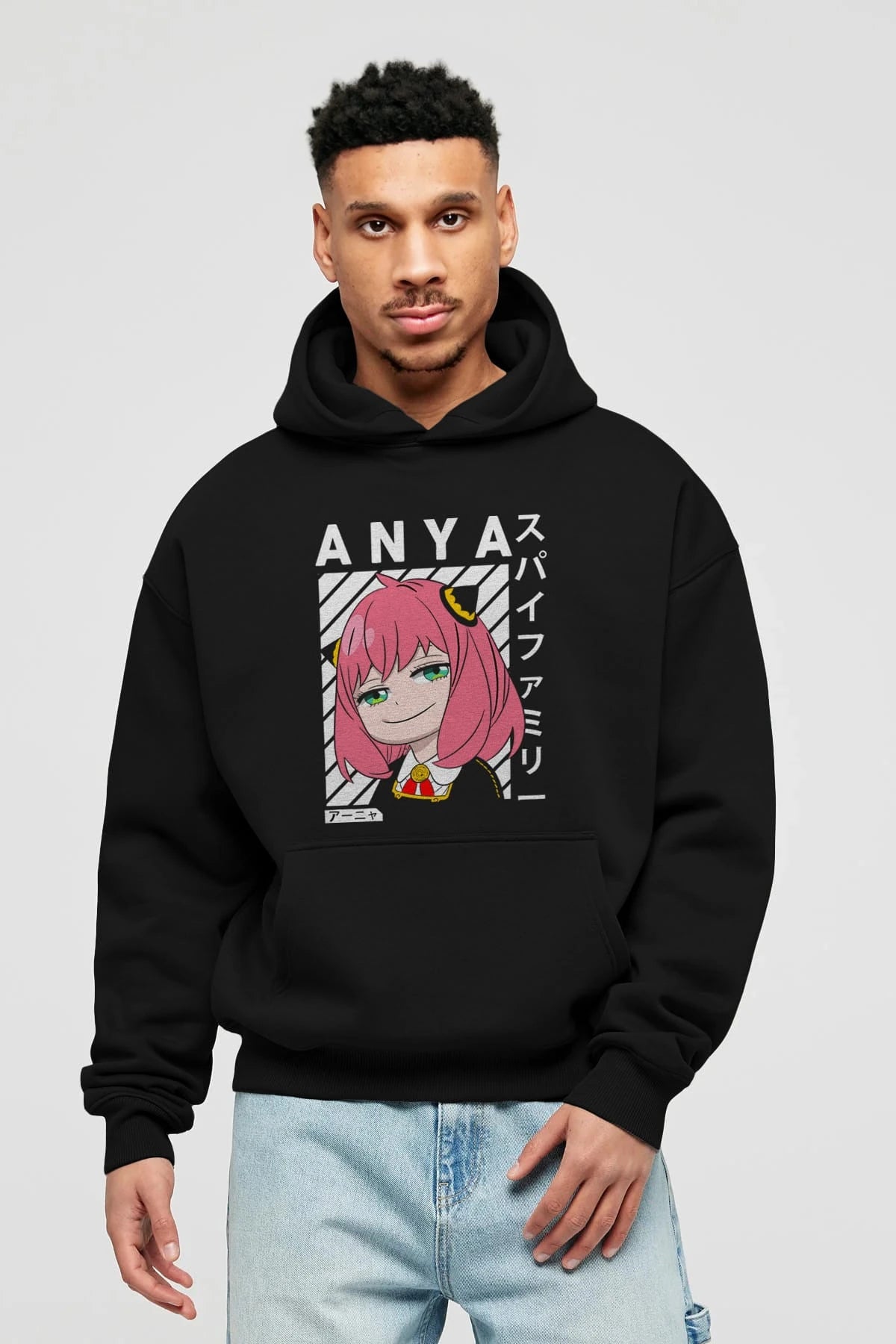 Anya SPYX FAMILY Anime Ön Baskılı Hoodie Oversize Kapüşonlu Sweatshirt Erkek Kadın Unisex