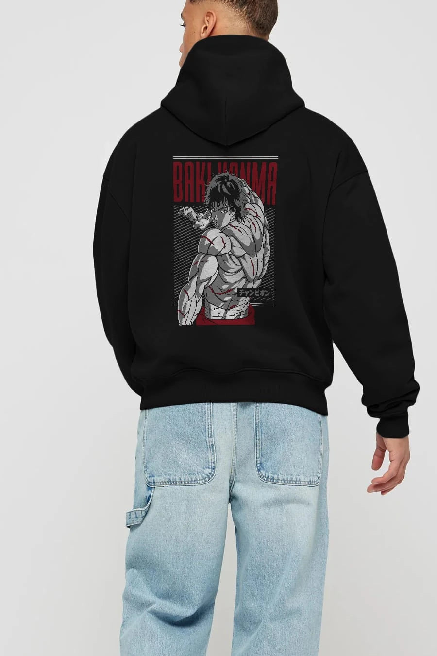 BAKI HANMA Anime Arka Baskılı Hoodie Oversize Kapüşonlu Sweatshirt Erkek Kadın Unisex