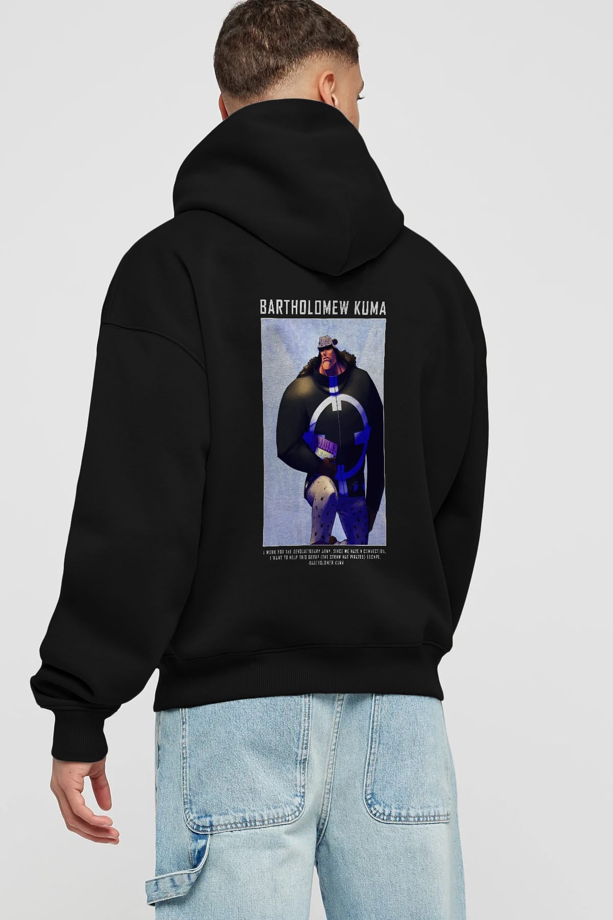 Bartholomew Kuma Anime Arka Baskılı Hoodie Oversize Kapüşonlu Sweatshirt Erkek Kadın Unisex