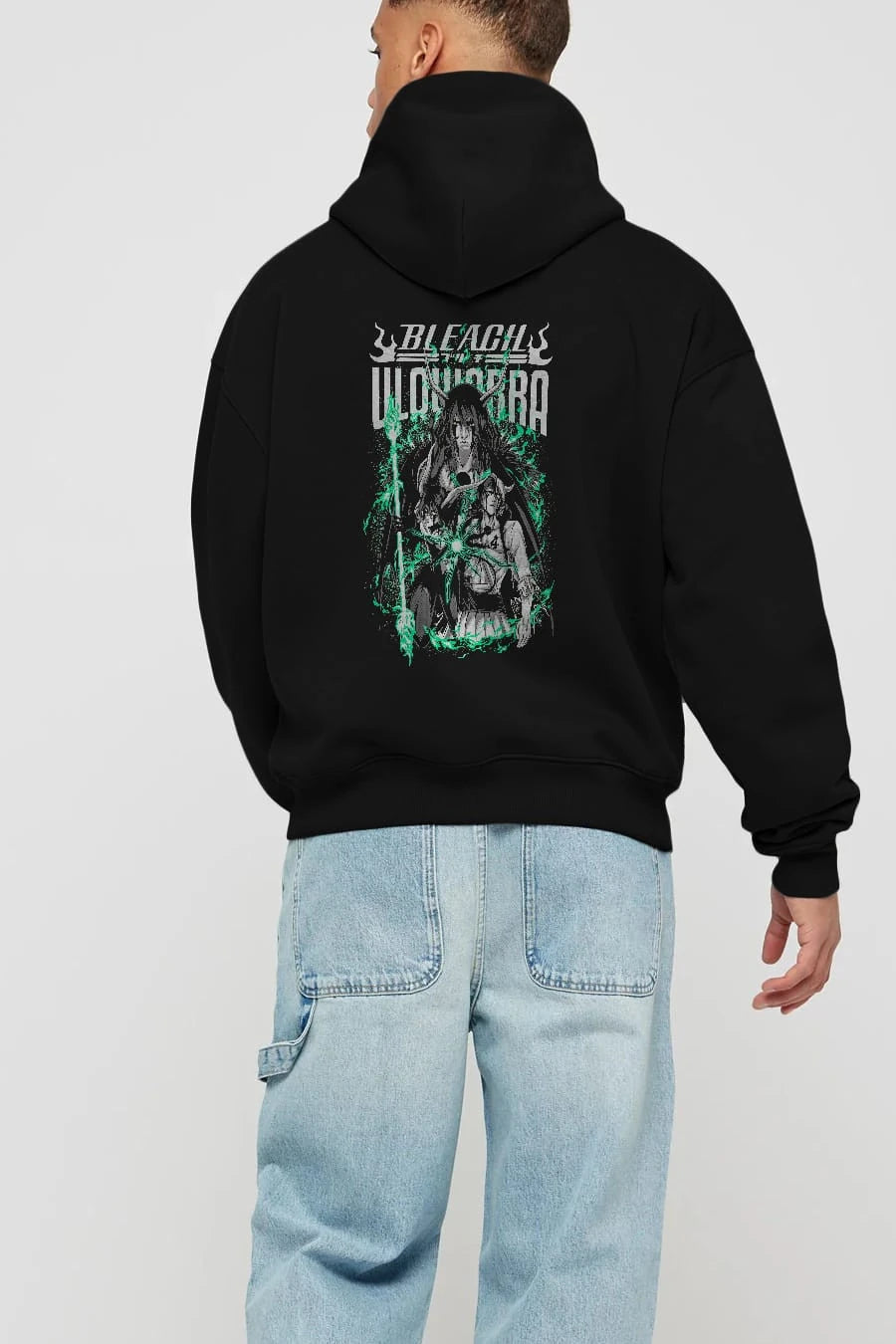 BLEACH(ULQUIARRA) Anime Arka Baskılı Hoodie Oversize Kapüşonlu Sweatshirt Erkek Kadın Unisex