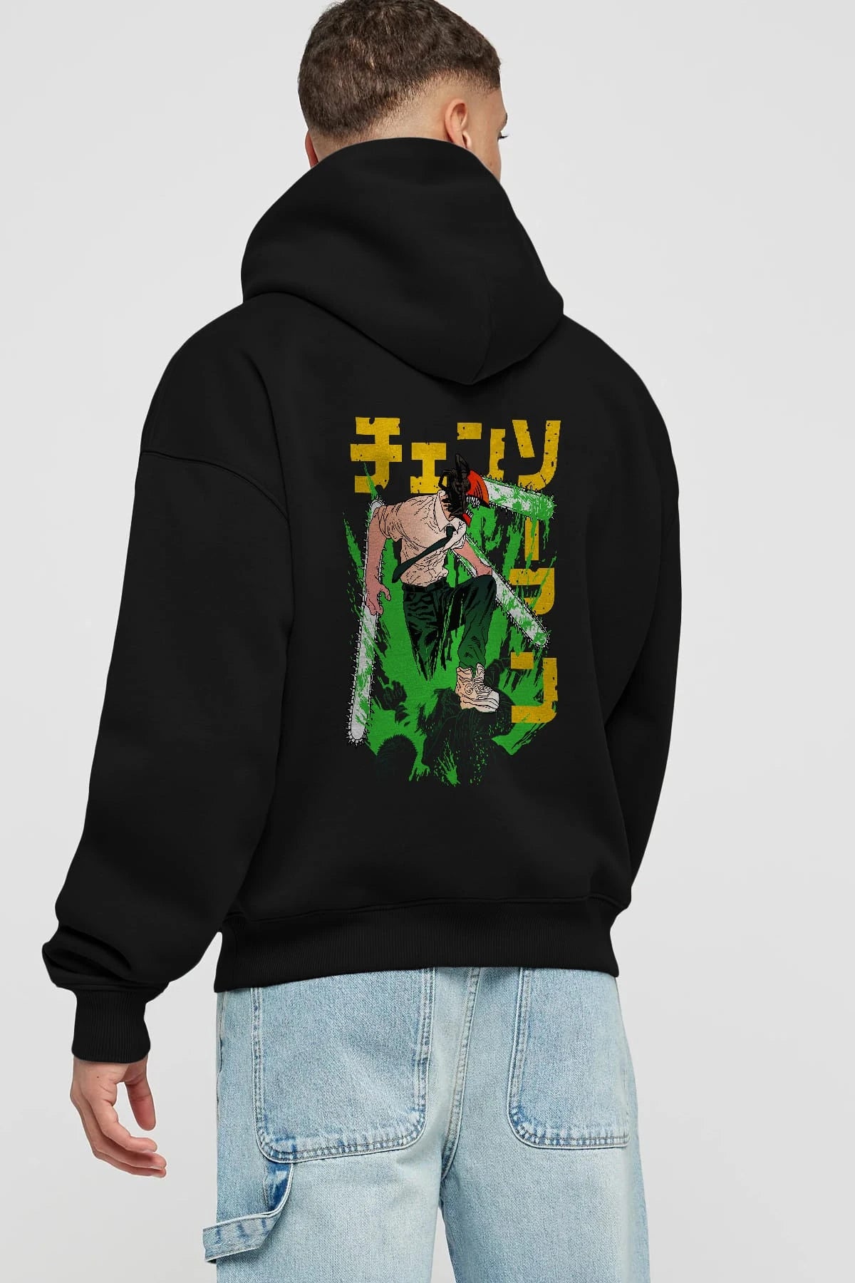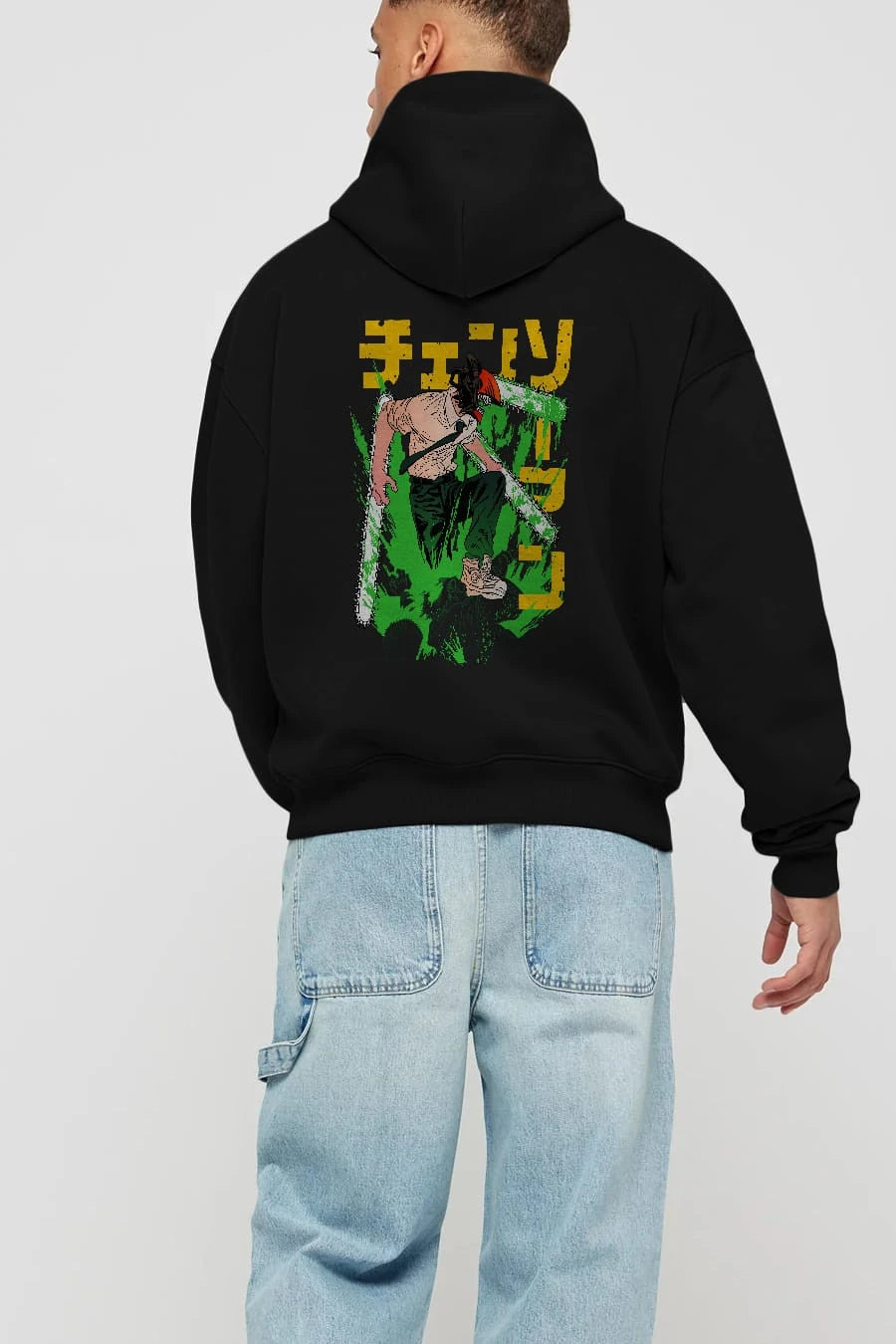 CHAINSAWMAN DENJI Anime Arka Baskılı Hoodie Oversize Kapüşonlu Sweatshirt Erkek Kadın Unisex