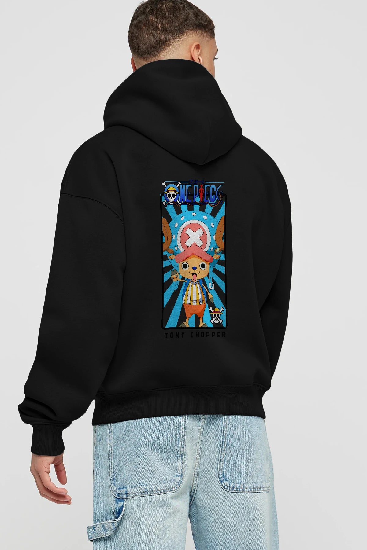 Chopper Anime Arka Baskılı Hoodie Oversize Kapüşonlu Sweatshirt Erkek Kadın Unisex