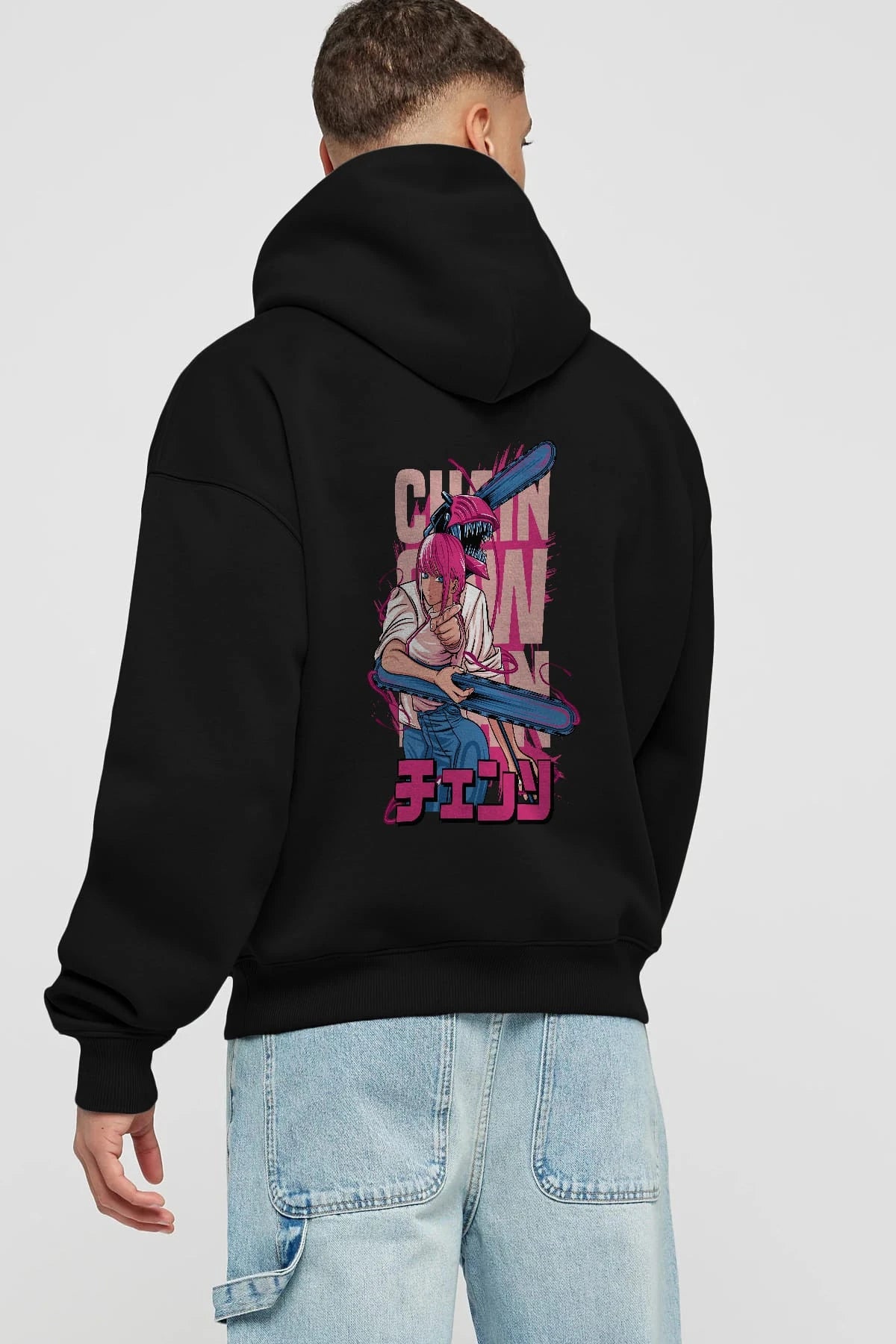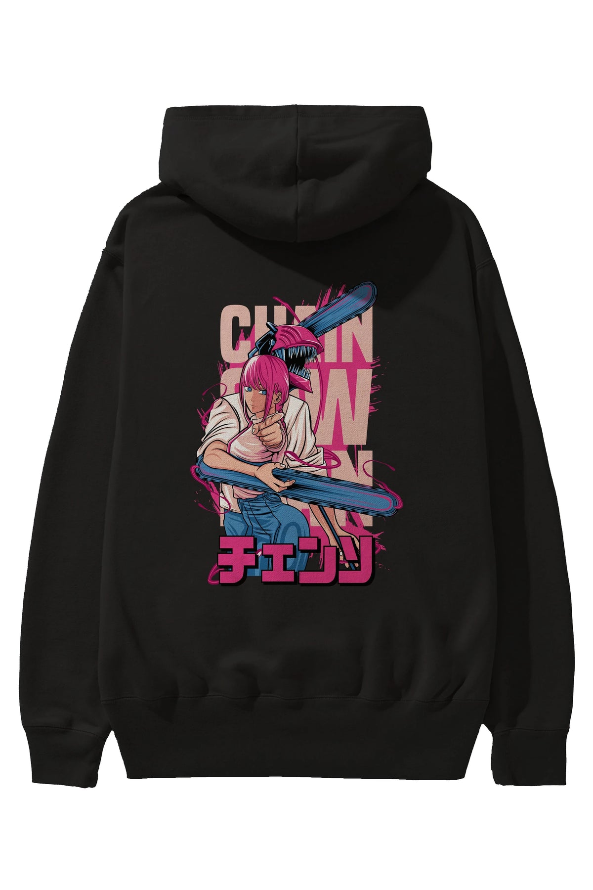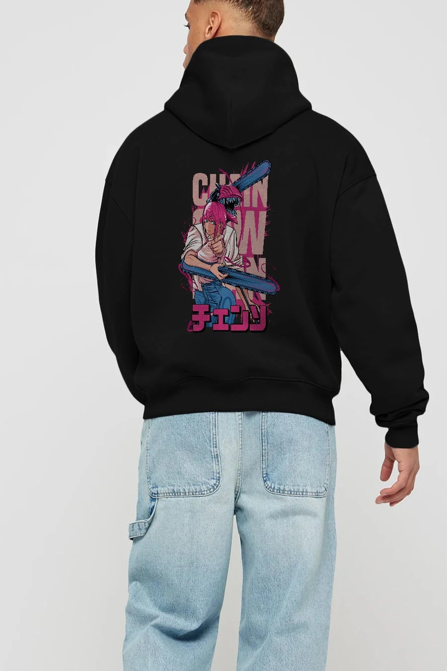 DENJI and MAKIMA Anime Arka Baskılı Hoodie Oversize Kapüşonlu Sweatshirt Erkek Kadın Unisex