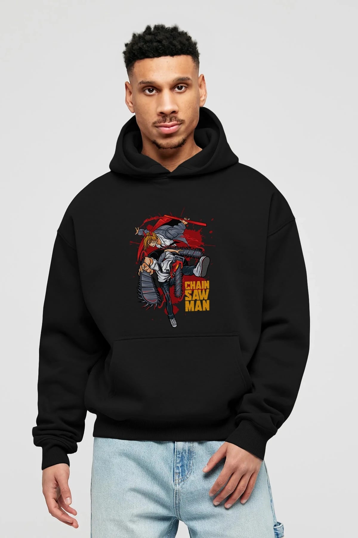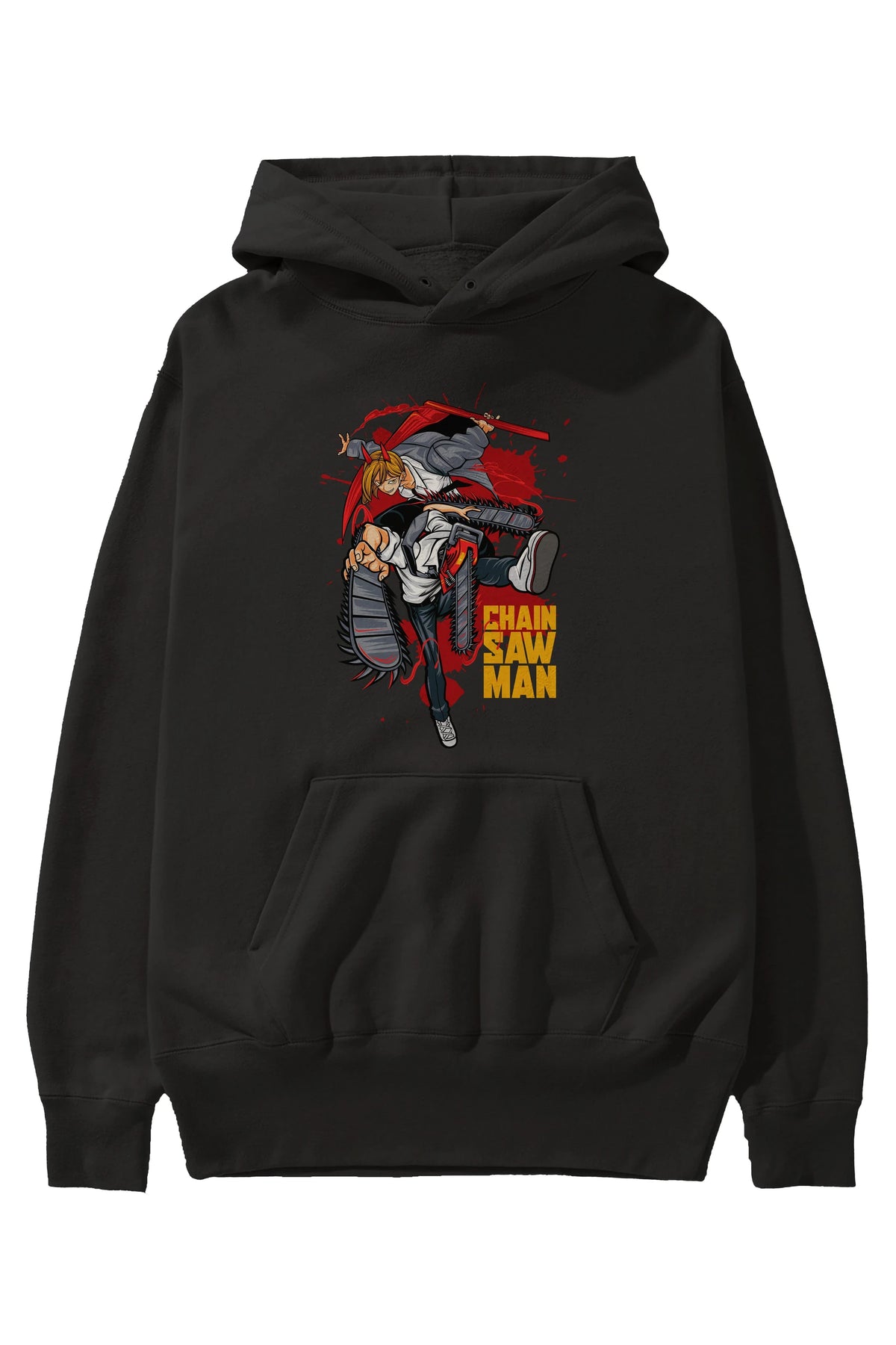 DENJI and POWER Anime Ön Baskılı Hoodie Oversize Kapüşonlu Sweatshirt Erkek Kadın Unisex