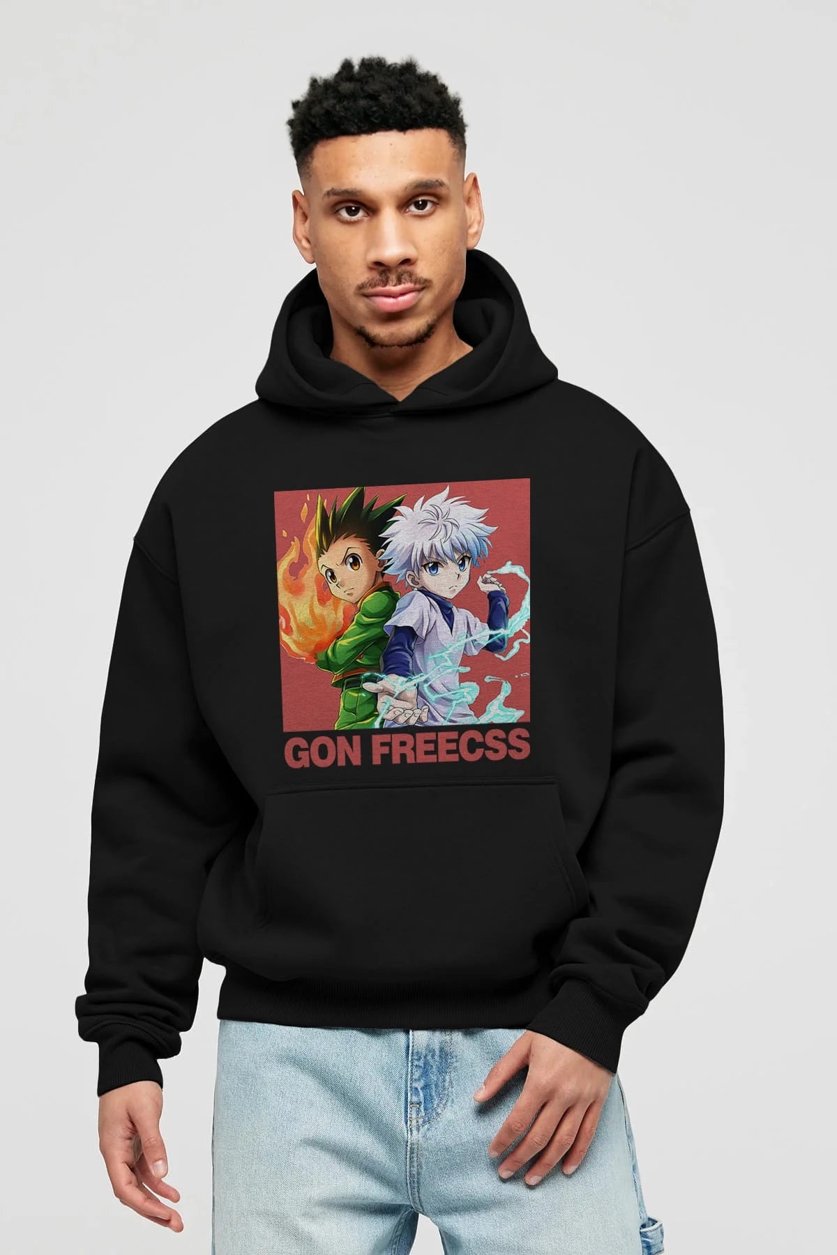 Gon Freecss HUNTER X HUNTER 4 Anime Ön Baskılı Hoodie Oversize Kapüşonlu Sweatshirt Erkek Kadın Unisex