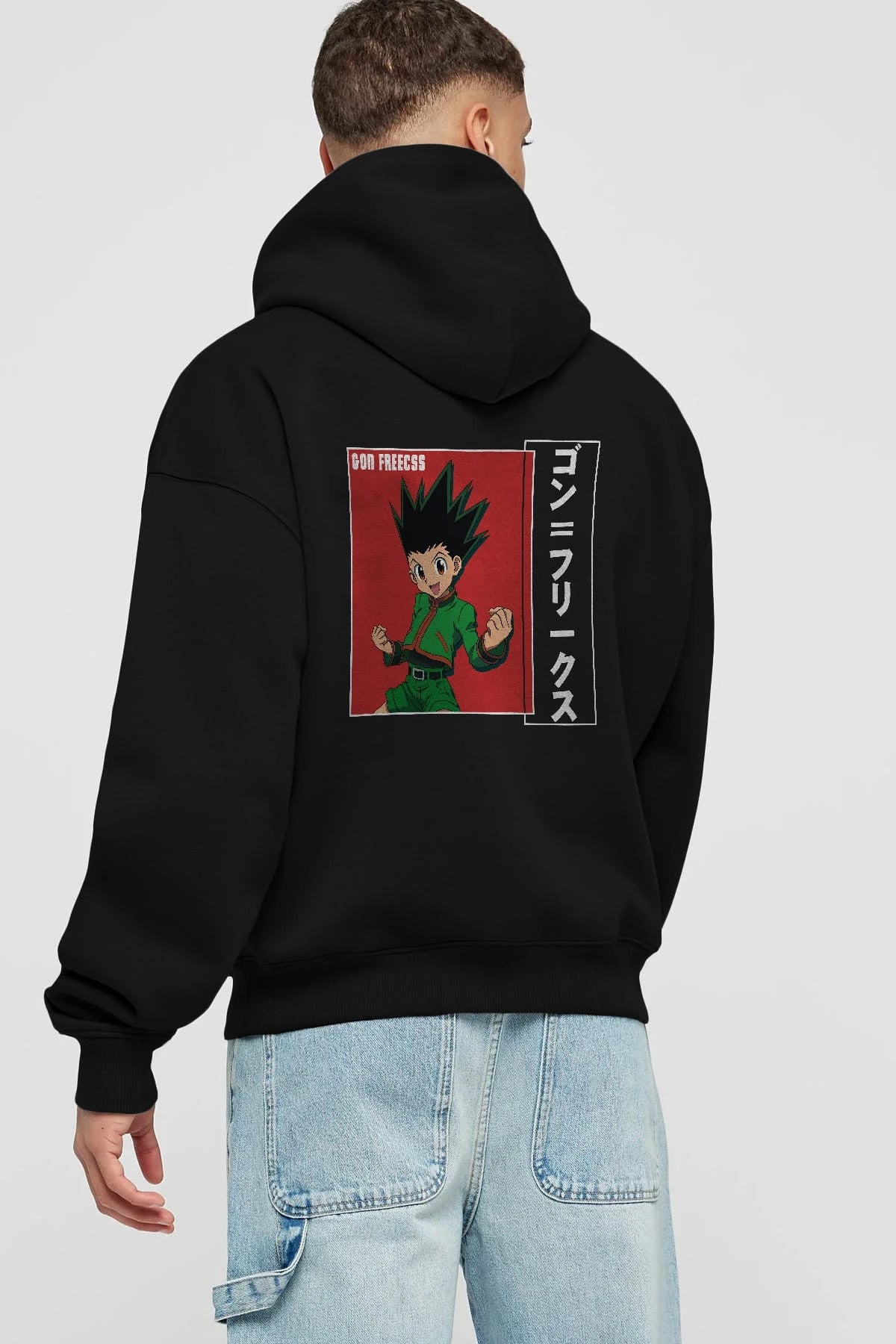 Gon Freecss HUNTER X HUNTER 5 Anime Arka Baskılı Hoodie Oversize Kapüşonlu Sweatshirt Erkek Kadın Unisex