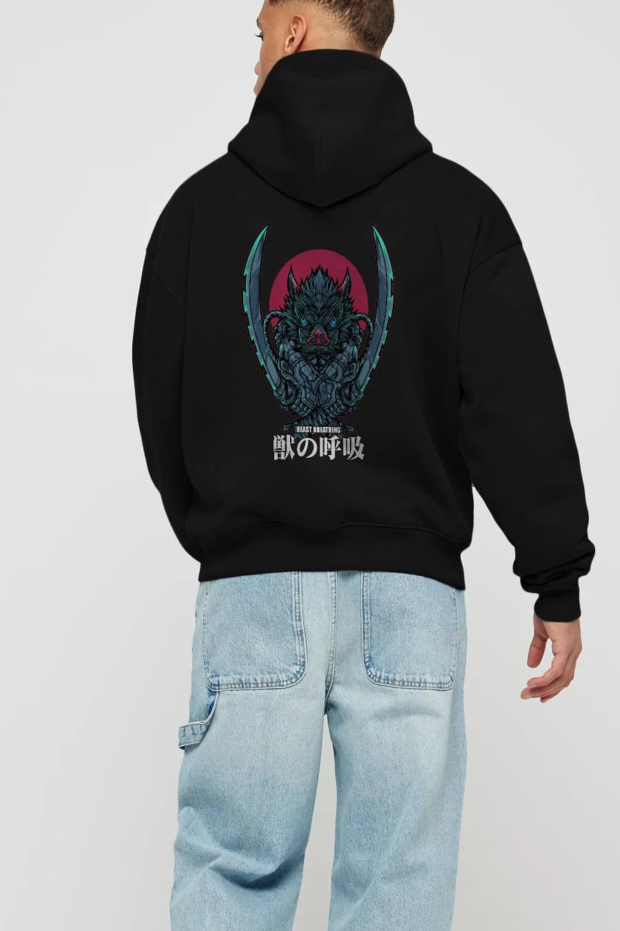 Inosuke DEMON SLAYER Anime Arka Baskılı Hoodie Oversize Kapüşonlu Sweatshirt Erkek Kadın Unisex