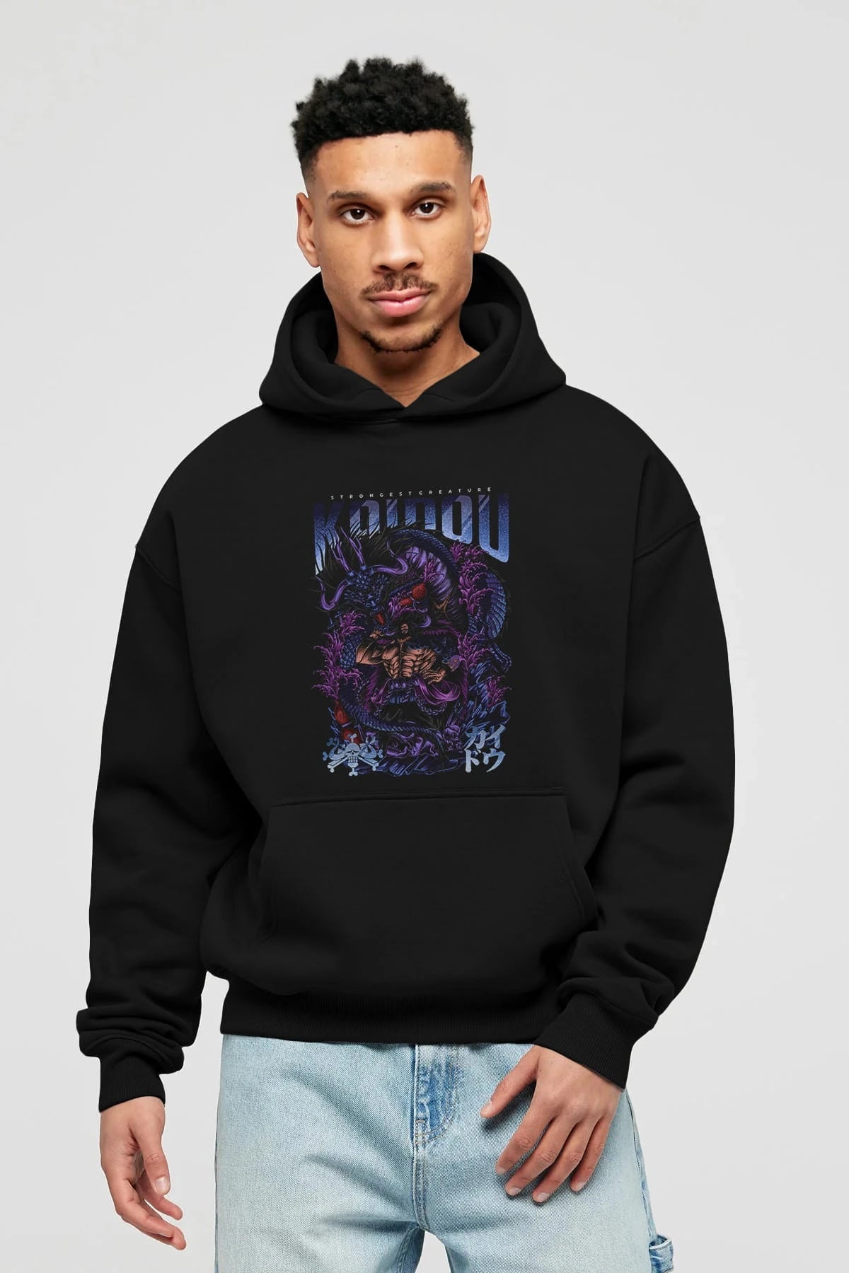 KAIDOU ONE PIECE Anime Ön Baskılı Hoodie Oversize Kapüşonlu Sweatshirt Erkek Kadın Unisex