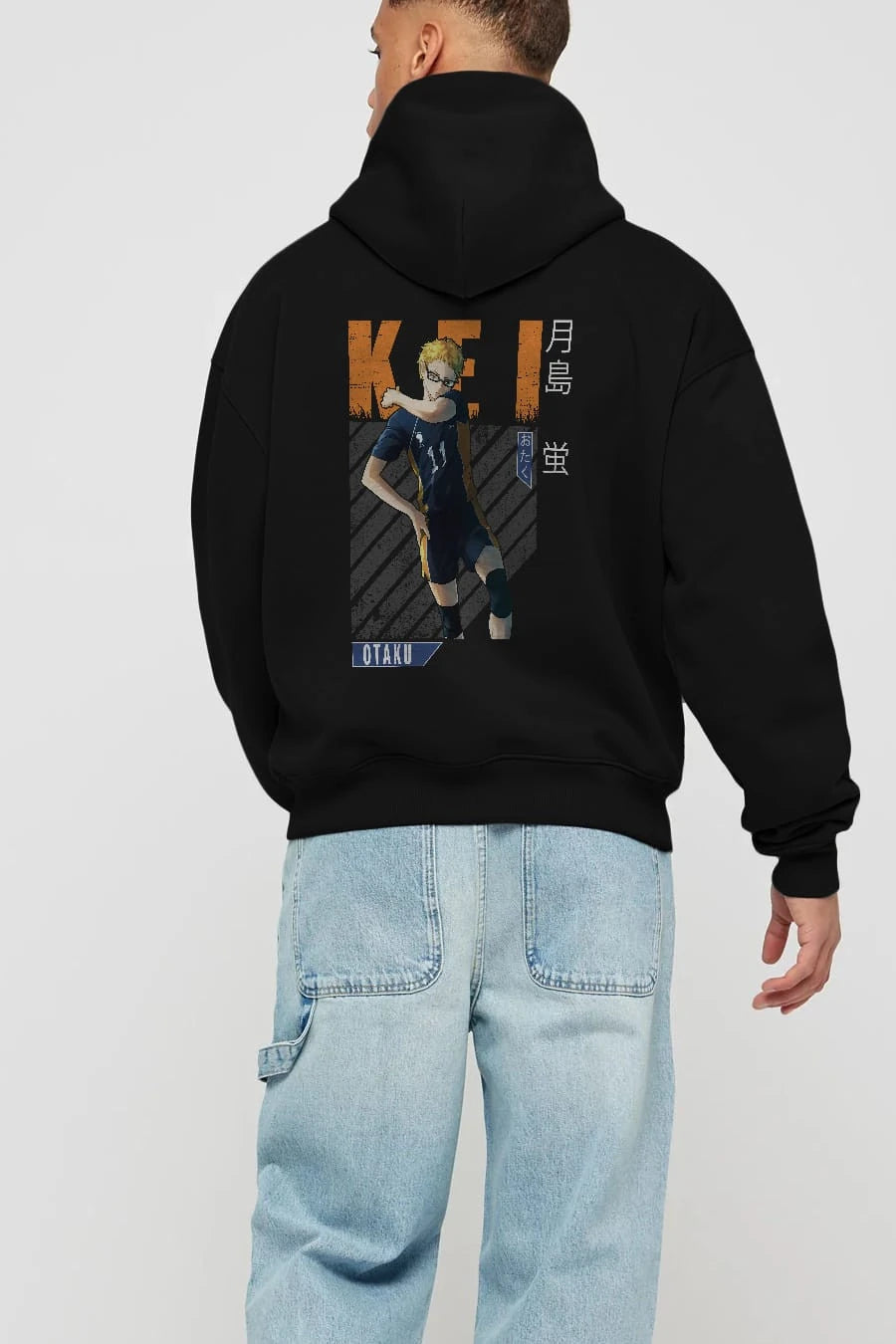 Kei Tsukishima 2 Anime Arka Baskılı Hoodie Oversize Kapüşonlu Sweatshirt Erkek Kadın Unisex