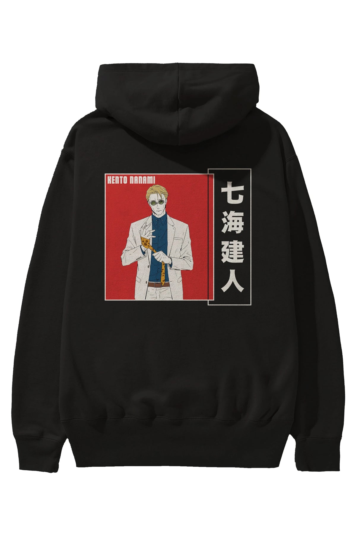 Kento Nanami 1 Anime Arka Baskılı Hoodie Oversize Kapüşonlu Sweatshirt Erkek Kadın Unisex