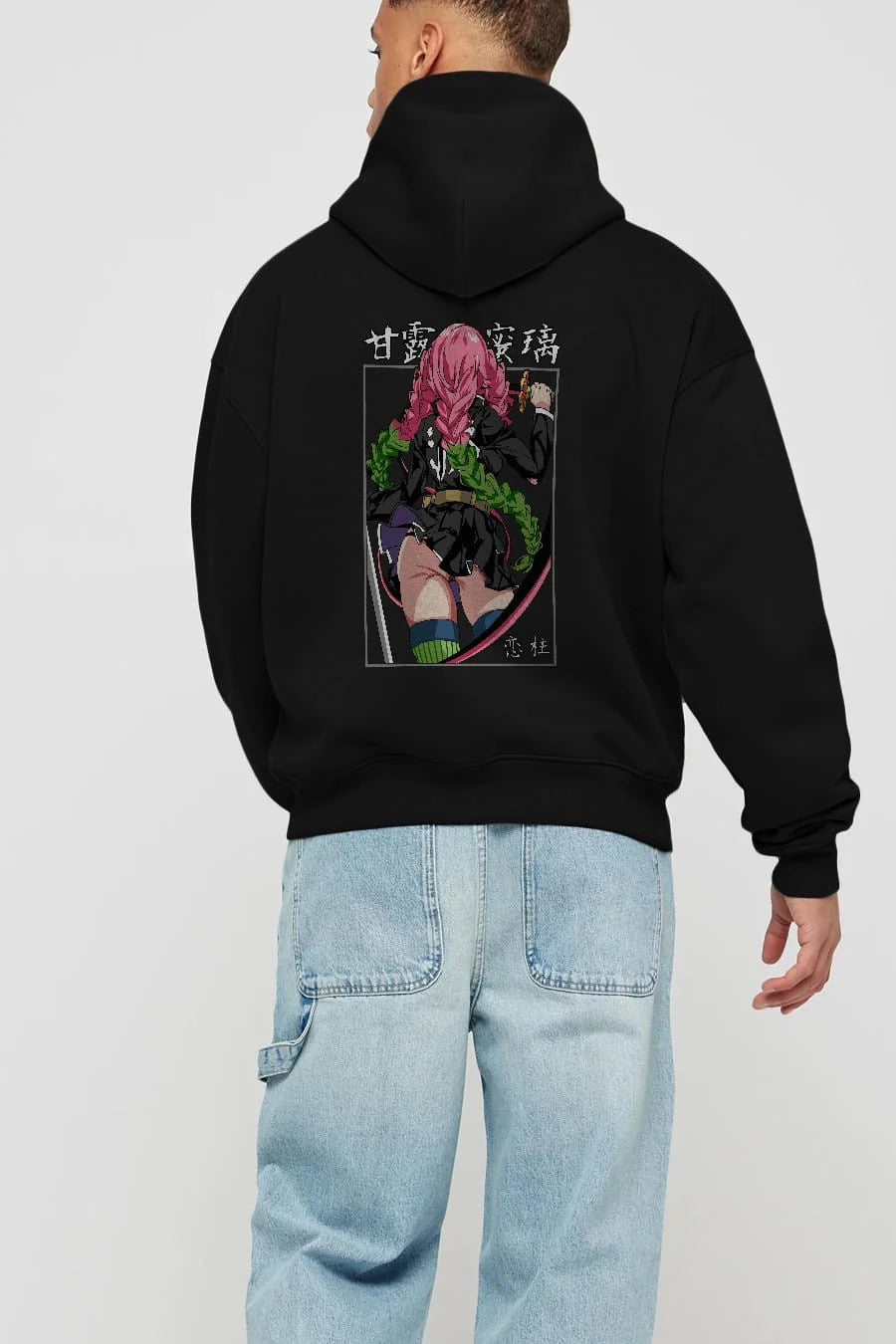 Mitsuri DEMONSLAYER Anime Arka Baskılı Hoodie Oversize Kapüşonlu Sweatshirt Erkek Kadın Unisex