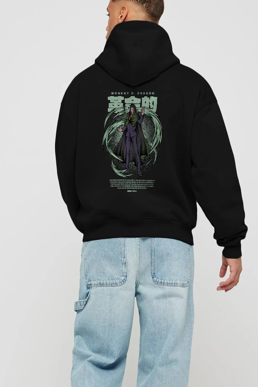 Monkey D. Dragon Anime Arka Baskılı Hoodie Oversize Kapüşonlu Sweatshirt Erkek Kadın Unisex