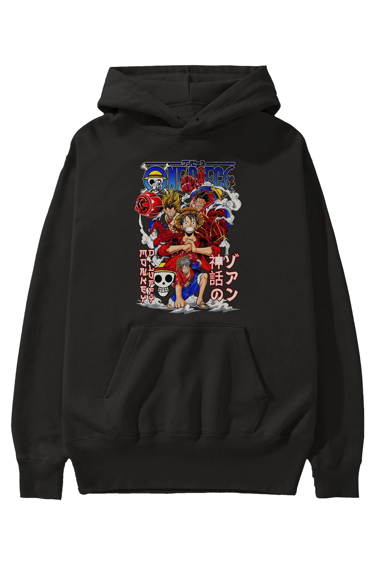 MONKEY D. LUFF-ONE PIECE 2 Anime Ön Baskılı Hoodie Oversize Kapüşonlu Sweatshirt Erkek Kadın Unisex