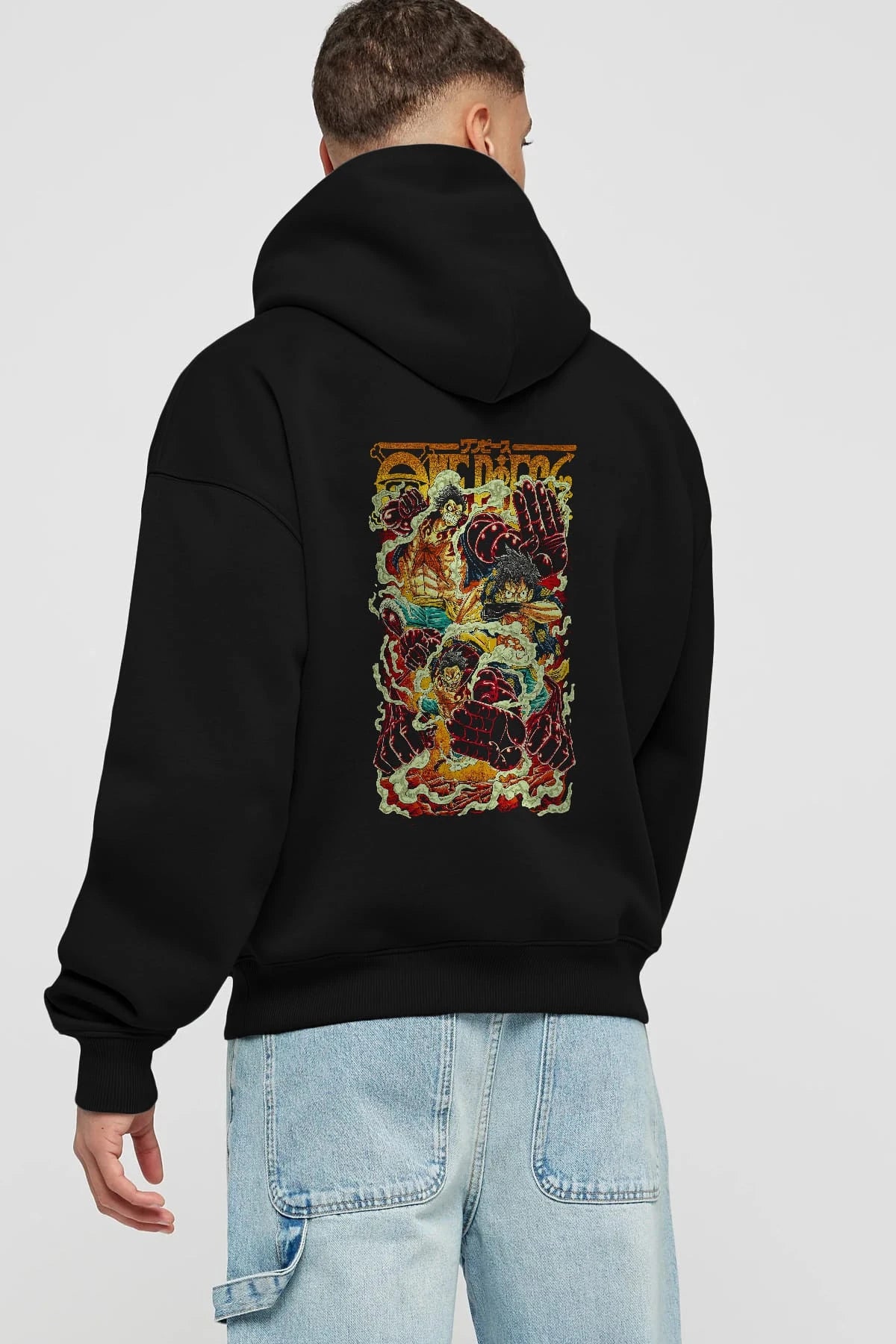 MONKEY D. LUFFY Anime Arka Baskılı Hoodie Oversize Kapüşonlu Sweatshirt Erkek Kadın Unisex