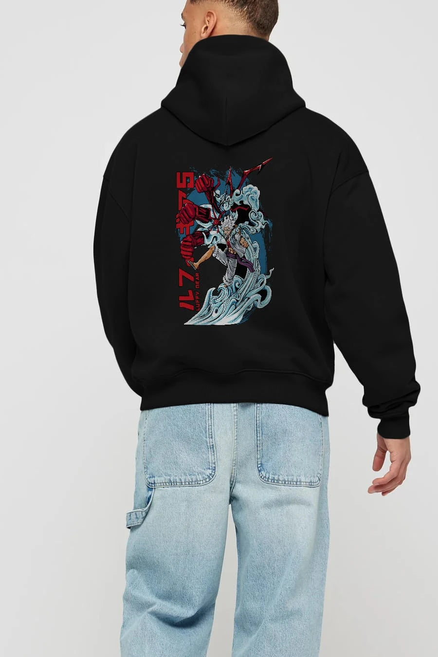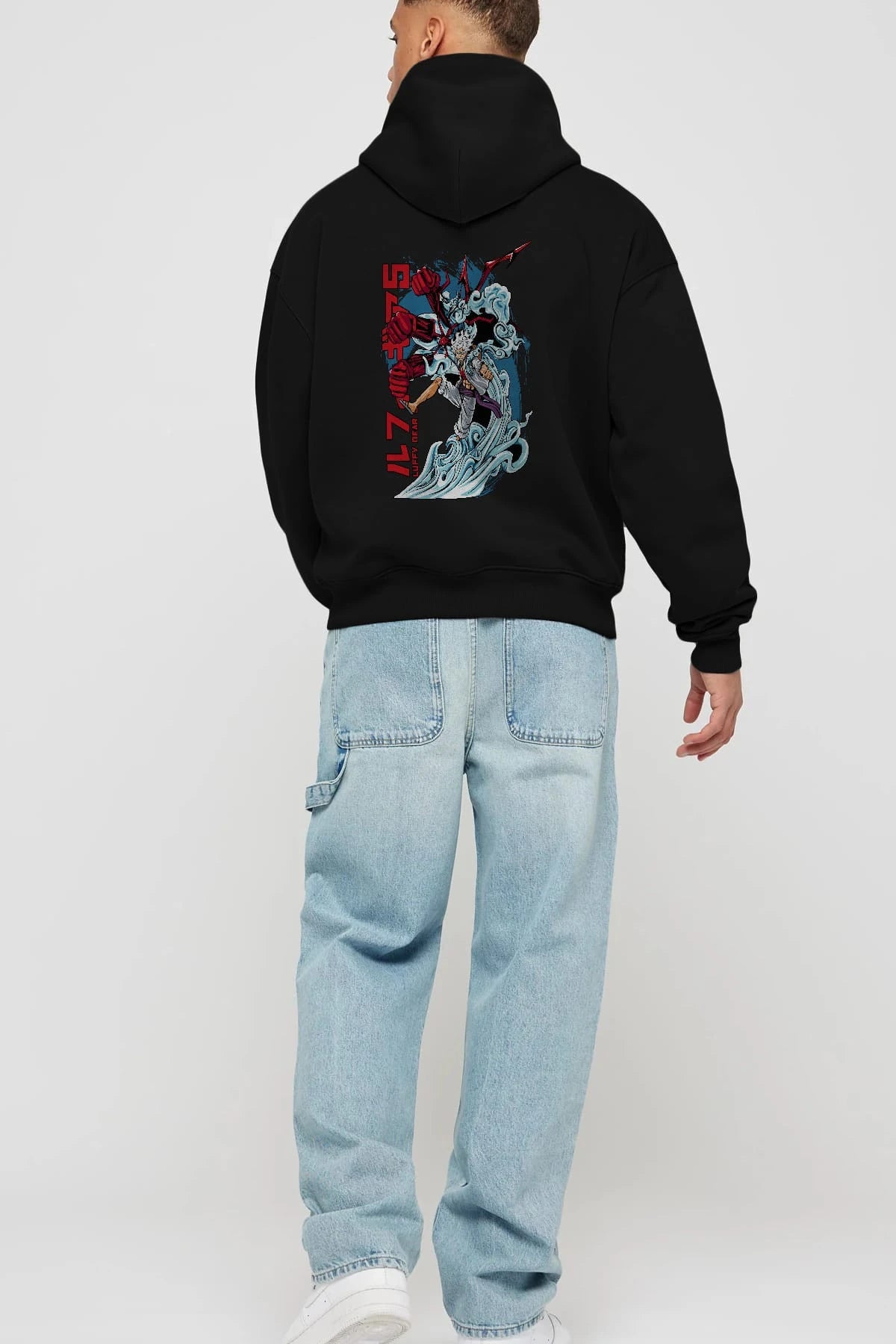 MONKEY D. LUFFY GEAR5 2 Anime Arka Baskılı Hoodie Oversize Kapüşonlu Sweatshirt Erkek Kadın Unisex