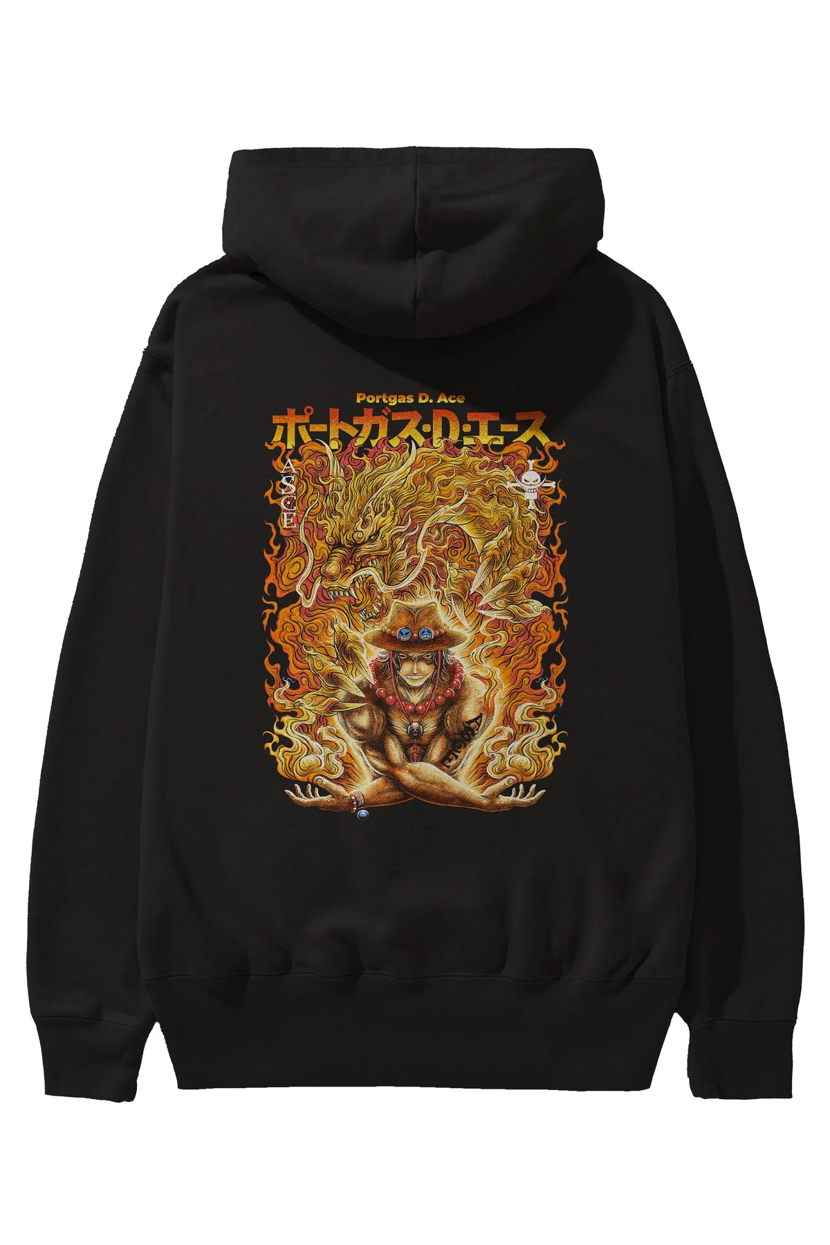 PORTGAS D. ACE Anime Arka Baskılı Hoodie Oversize Kapüşonlu Sweatshirt Erkek Kadın Unisex