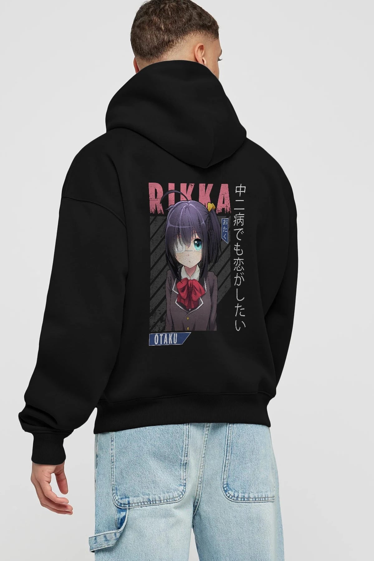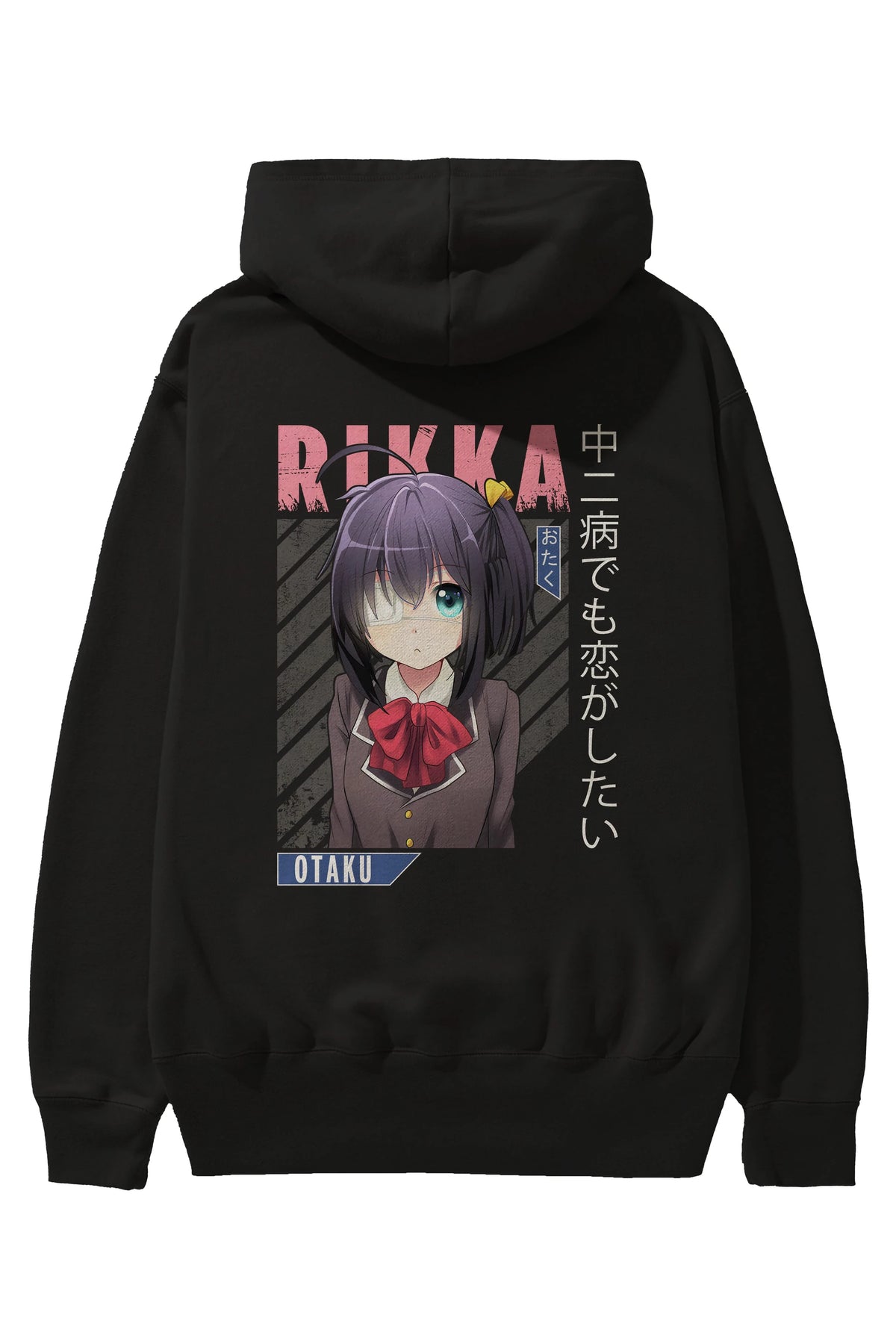 Rikka Takanashi 9 Anime Arka Baskılı Hoodie Oversize Kapüşonlu Sweatshirt Erkek Kadın Unisex