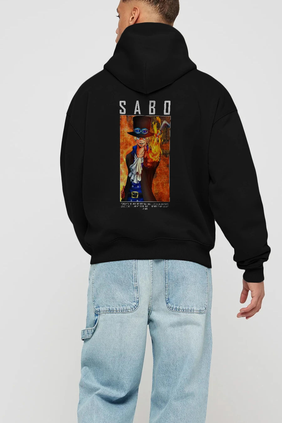 Sabo Anime Arka Baskılı Hoodie Oversize Kapüşonlu Sweatshirt Erkek Kadın Unisex