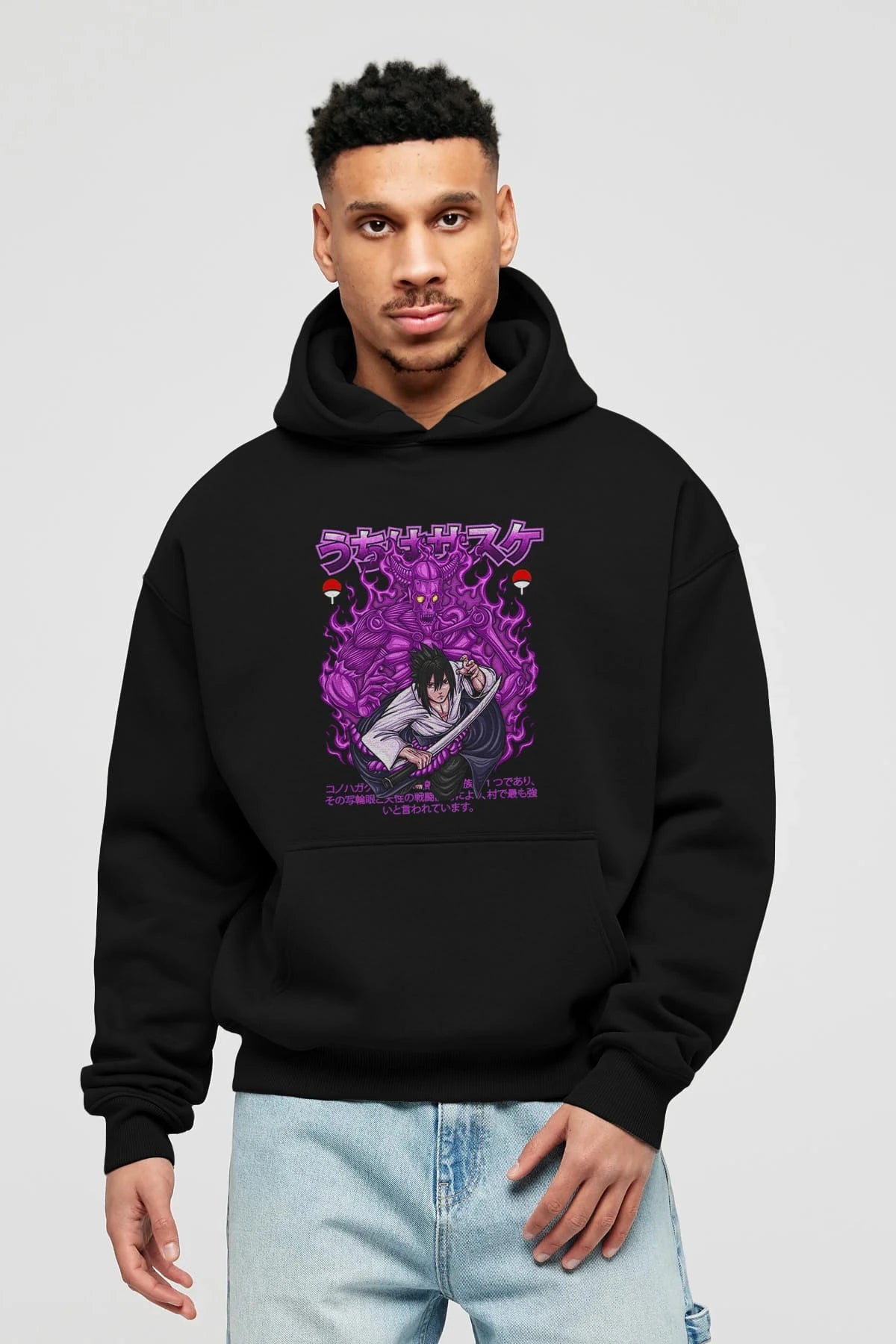 SASUKE UCHIHA NARUTO Anime Ön Baskılı Hoodie Oversize Kapüşonlu Sweatshirt Erkek Kadın Unisex