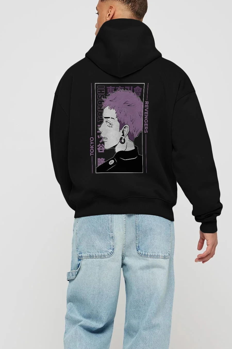 Takashi Mitsuya Anime Arka Baskılı Hoodie Oversize Kapüşonlu Sweatshirt Erkek Kadın Unisex