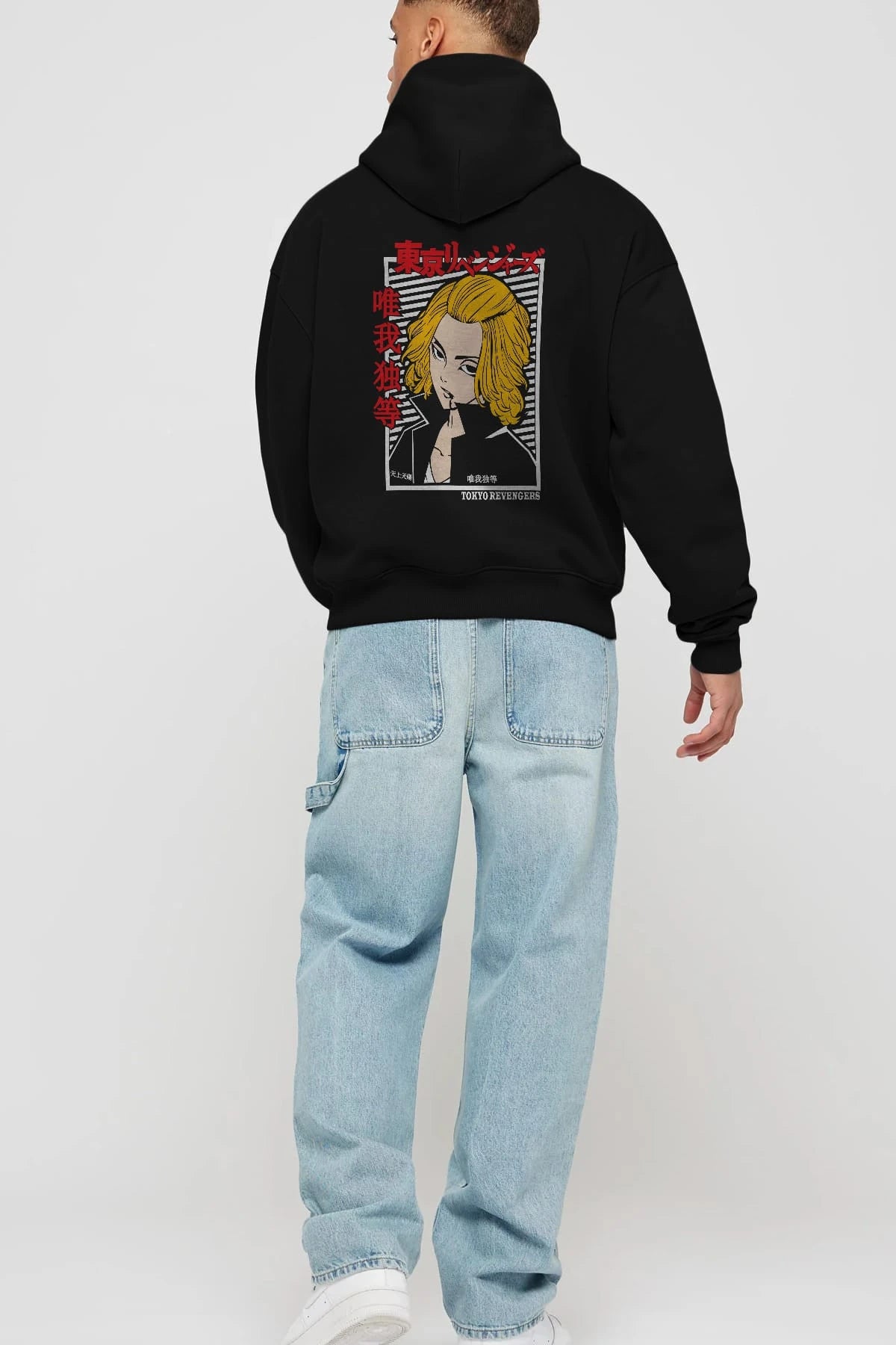 TokyoRev. M Anime Arka Baskılı Hoodie Oversize Kapüşonlu Sweatshirt Erkek Kadın Unisex