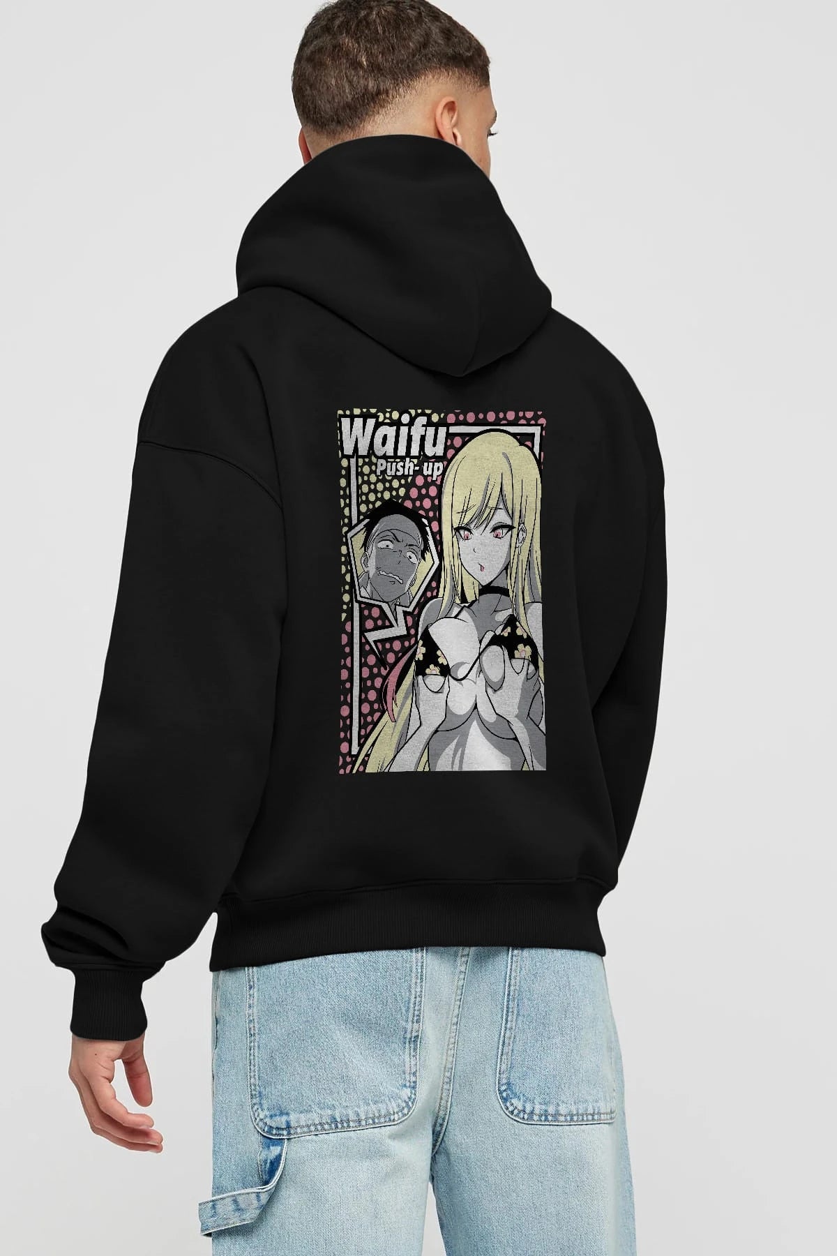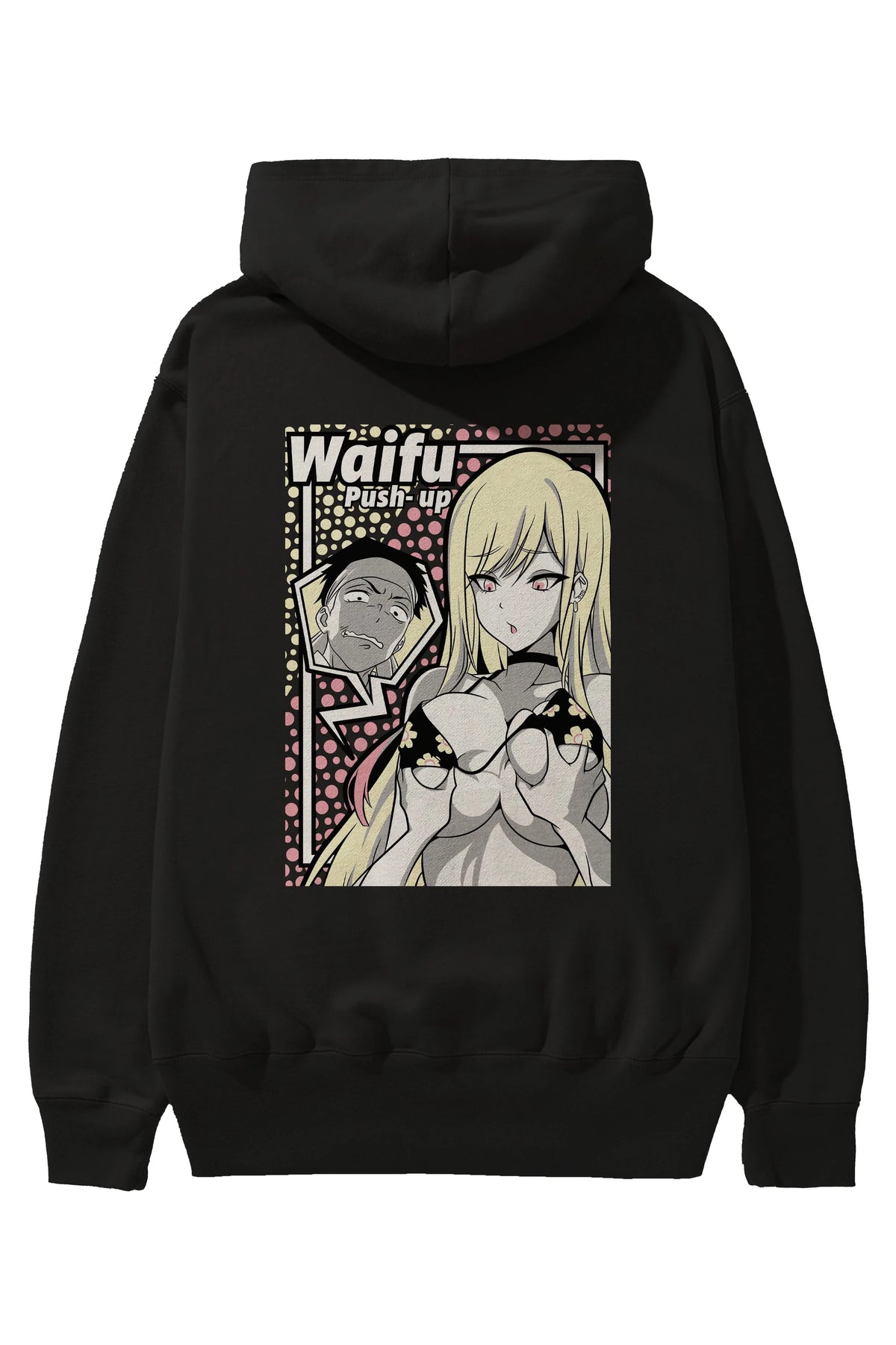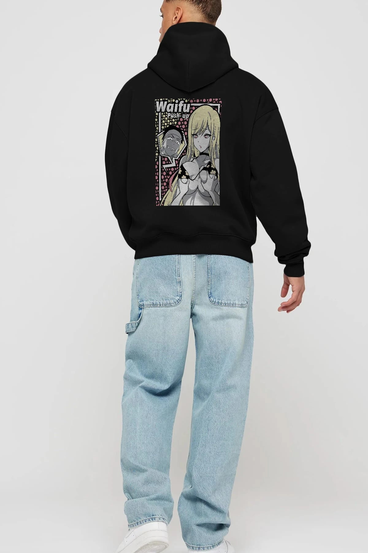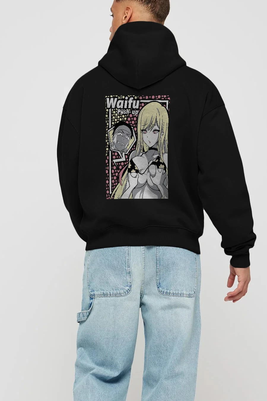 Waifu PushUp Anime Arka Baskılı Hoodie Oversize Kapüşonlu Sweatshirt Erkek Kadın Unisex