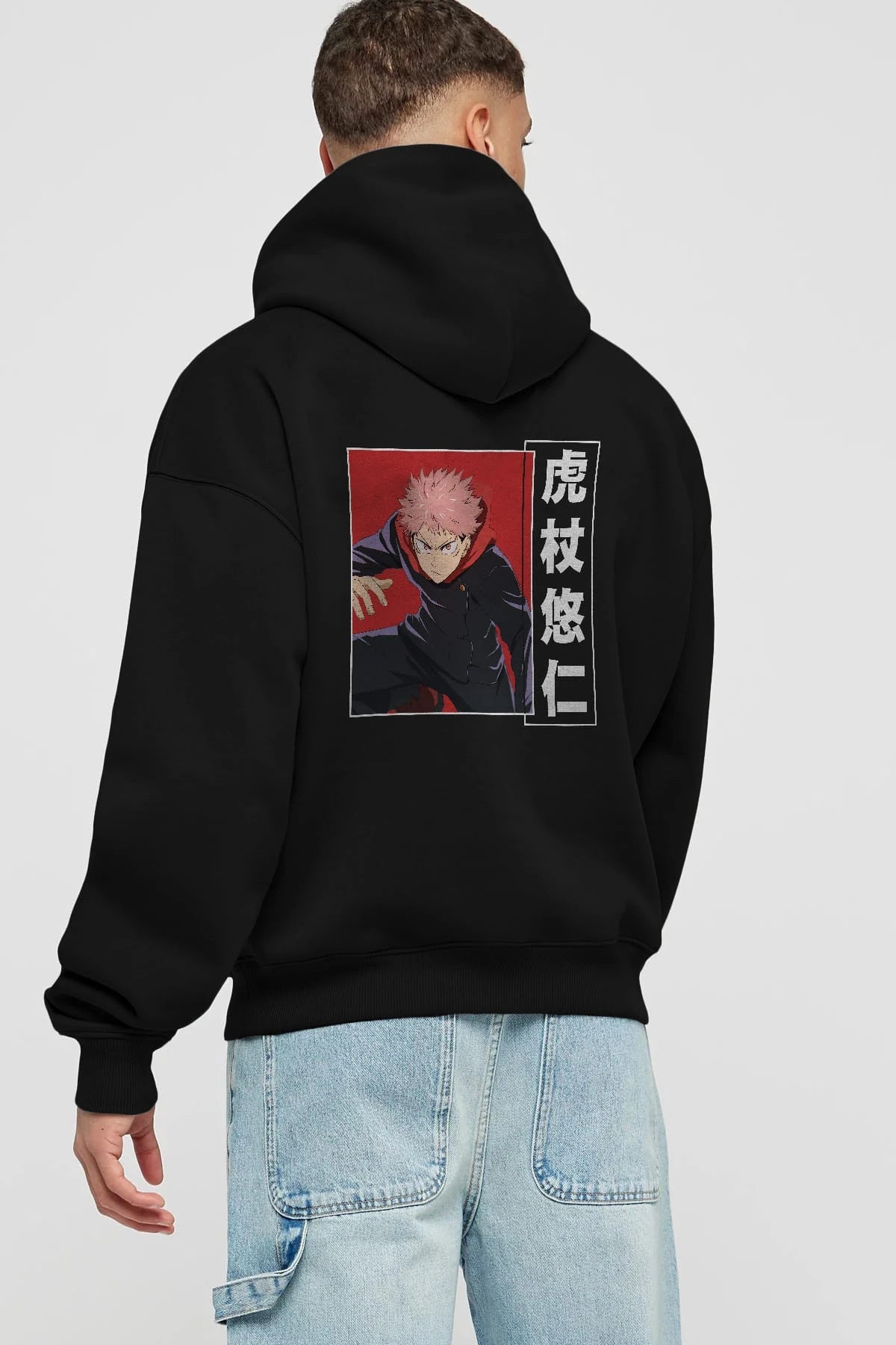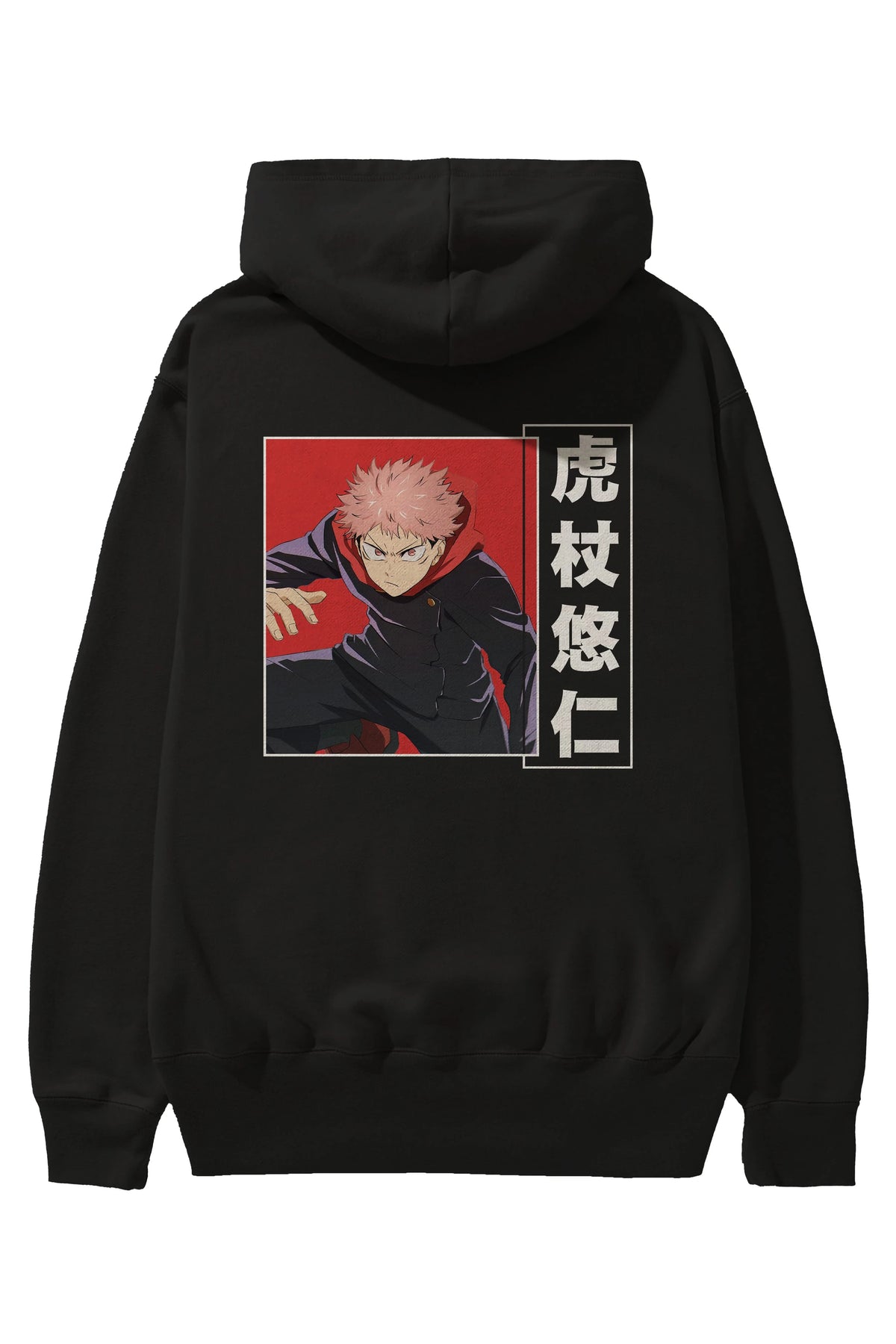 Yuuji Itadori 2 Anime Arka Baskılı Hoodie Oversize Kapüşonlu Sweatshirt Erkek Kadın Unisex