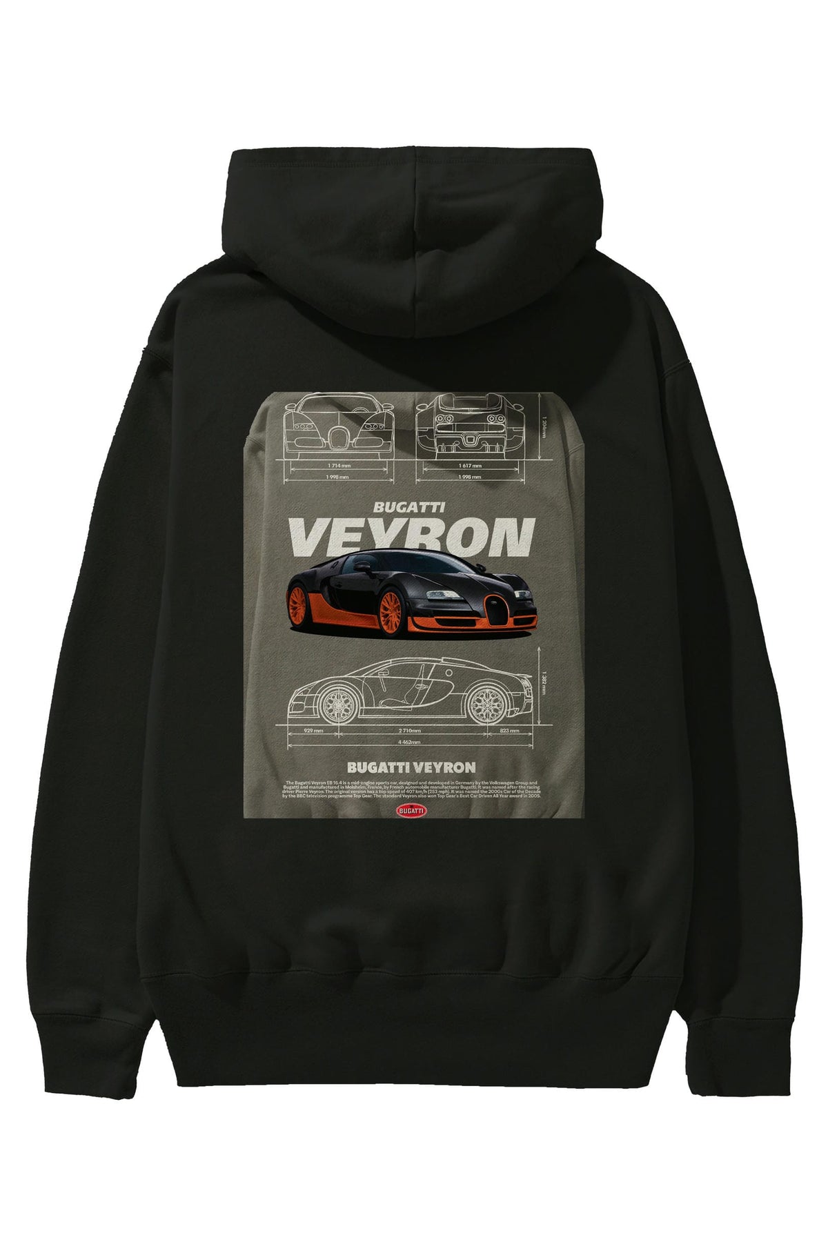 Bugatti VEYRON Arka Baskılı Hoodie Oversize Kapüşonlu Sweatshirt Erkek Kadın Unisex