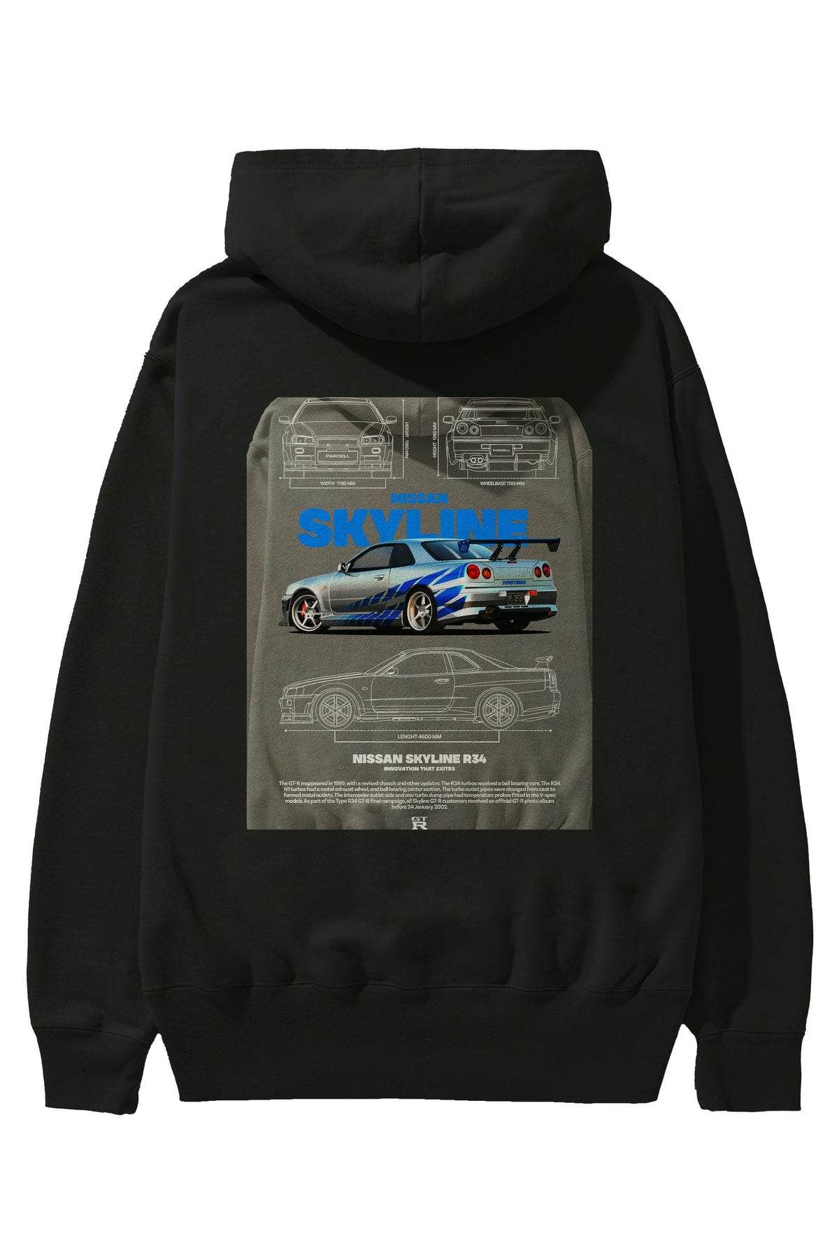 Nissan SKYLINE 34 FAST AND FURIOUS Arka Baskılı Hoodie Oversize Kapüşonlu Sweatshirt Erkek Kadın Unisex
