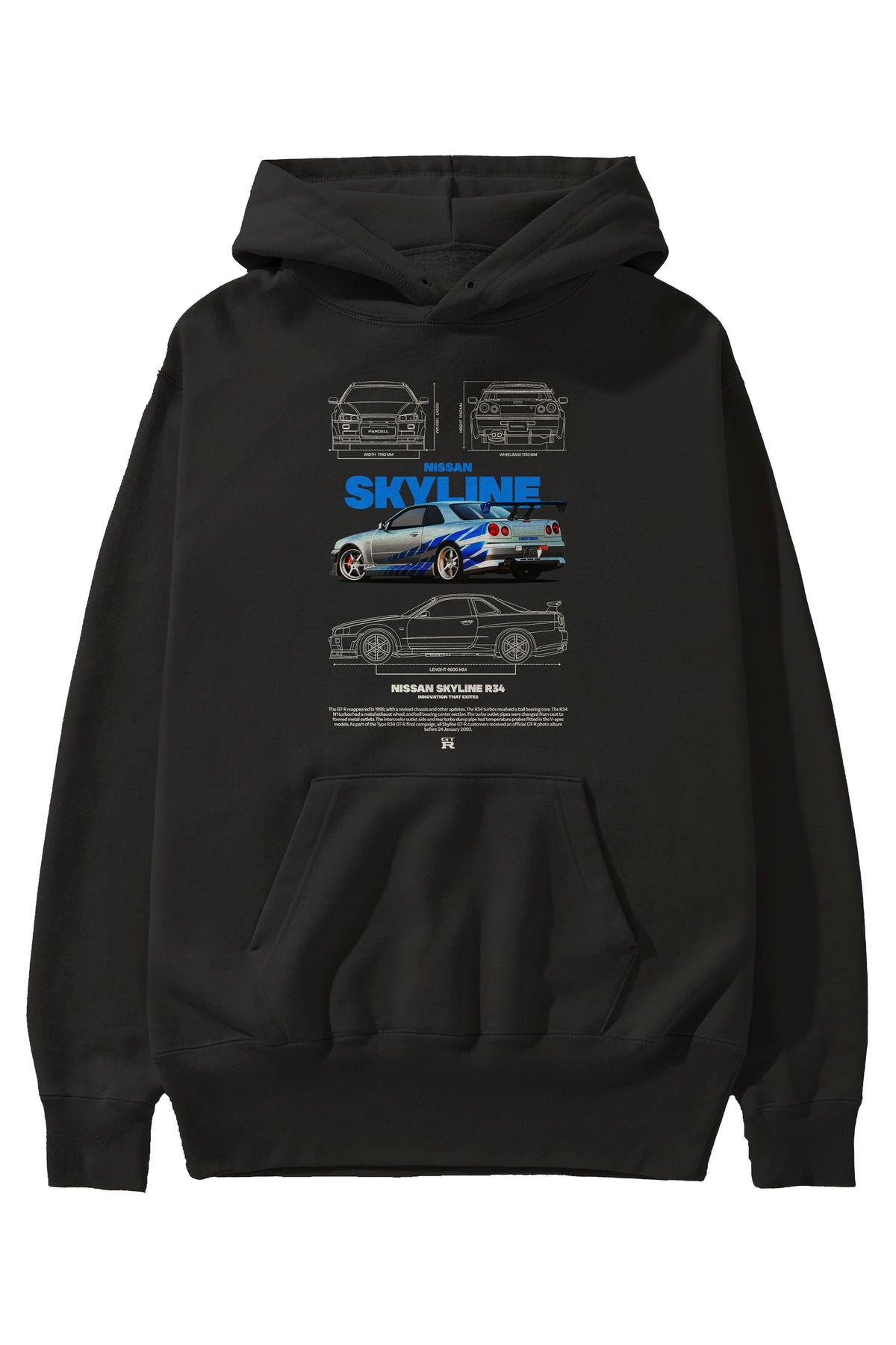 Nissan SKYLINE 34 FAST AND FURIOUS Ön Baskılı Hoodie Oversize Kapüşonlu Sweatshirt Erkek Kadın Unisex