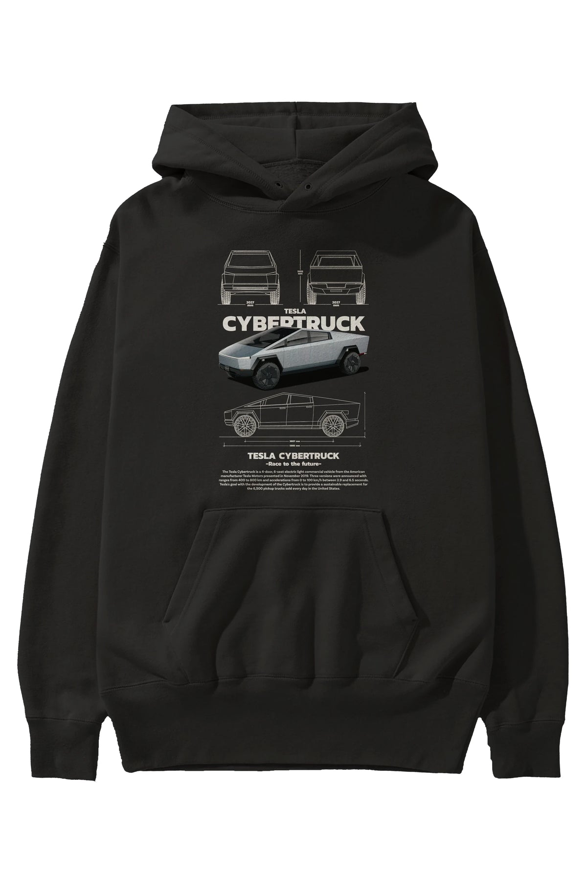 TESLA CYBERTRUCK Ön Baskılı Hoodie Oversize Kapüşonlu Sweatshirt Erkek Kadın Unisex