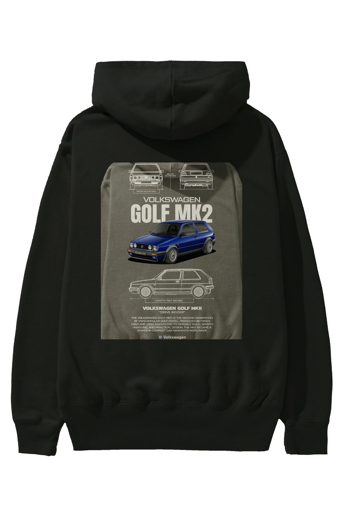 Volkswagen GOLF MK2 Arka Baskılı Hoodie Oversize Kapüşonlu Sweatshirt Erkek Kadın Unisex