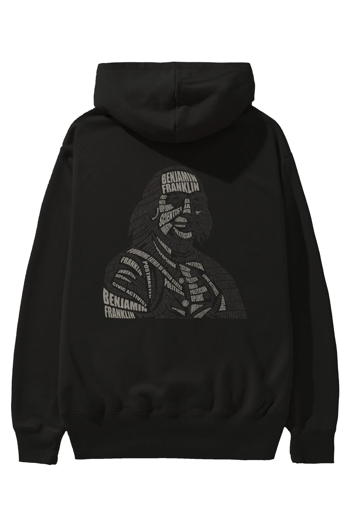 Benjamin Franklin Calligram Arka Baskılı Hoodie Oversize Kapüşonlu Sweatshirt Erkek Kadın Unisex