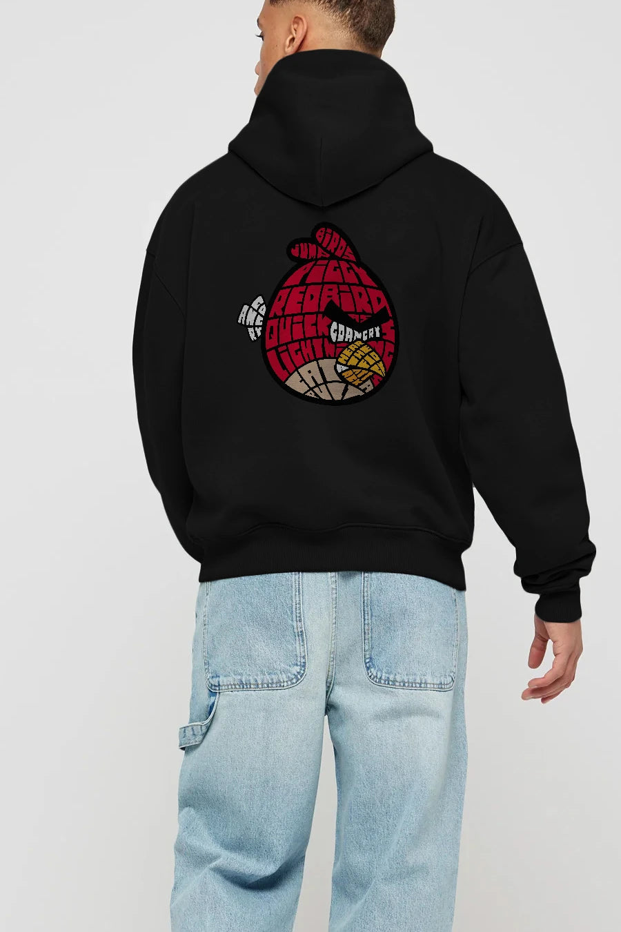 Bird With Anger Arka Baskılı Hoodie Oversize Kapüşonlu Sweatshirt Erkek Kadın Unisex