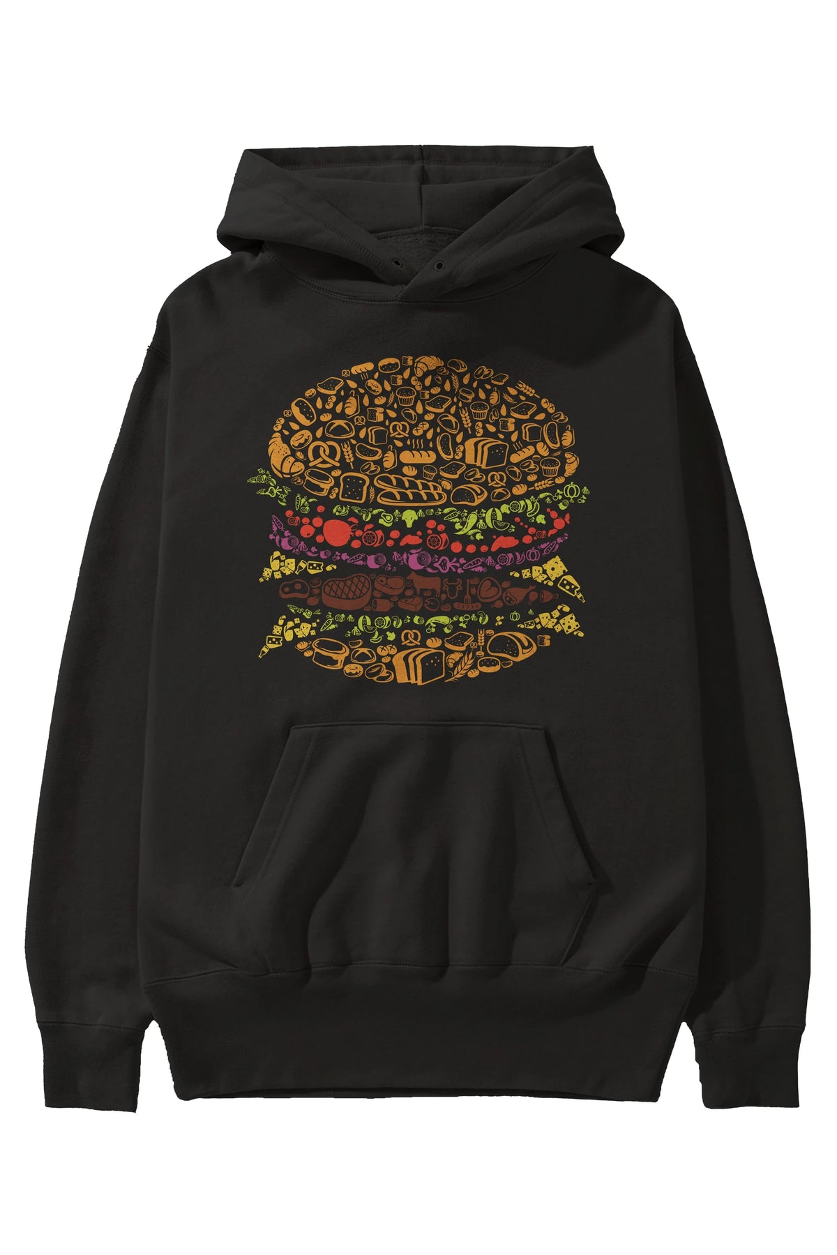 Burger Ön Baskılı Hoodie Oversize Kapüşonlu Sweatshirt Erkek Kadın Unisex