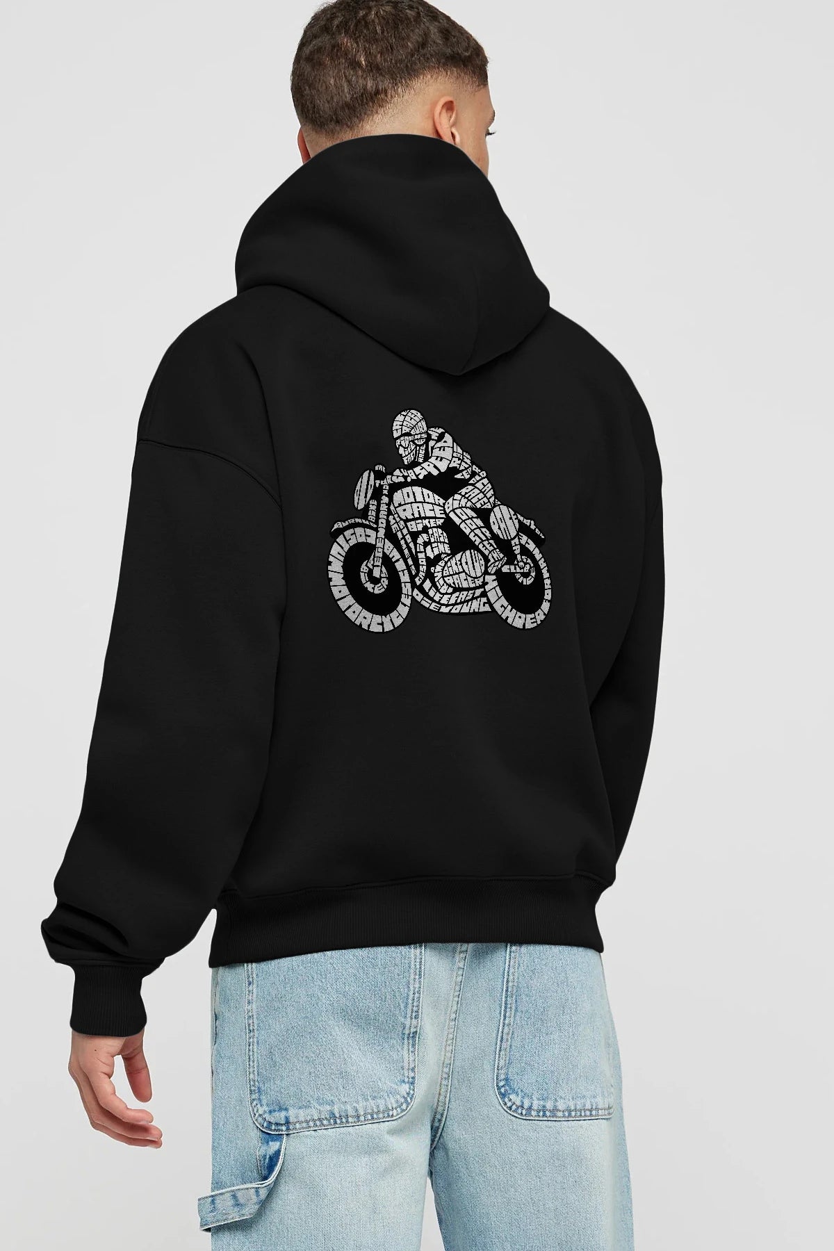 Caferacer Arka Baskılı Hoodie Oversize Kapüşonlu Sweatshirt Erkek Kadın Unisex
