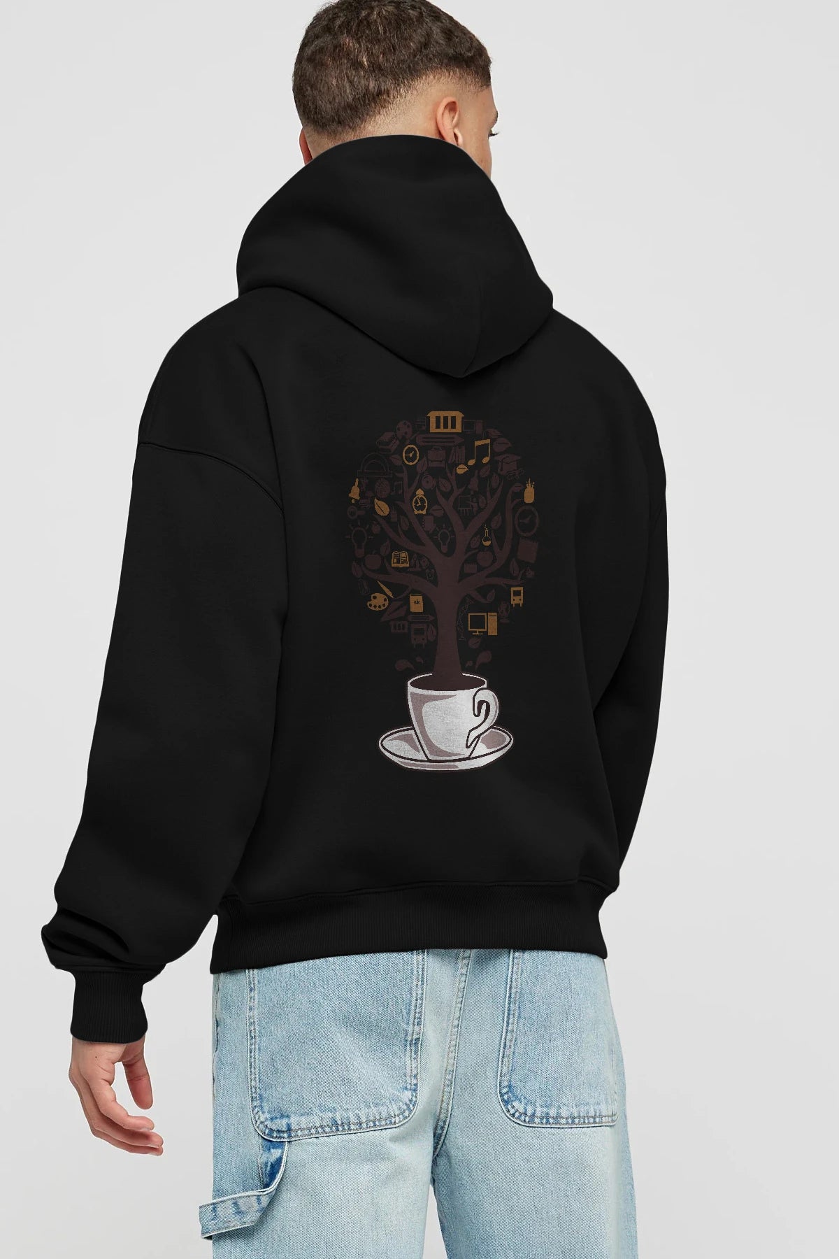 Coffee Tree Arka Baskılı Hoodie Oversize Kapüşonlu Sweatshirt Erkek Kadın Unisex