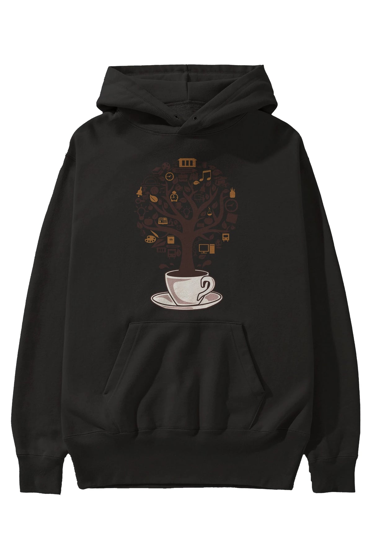 Coffee Tree Ön Baskılı Hoodie Oversize Kapüşonlu Sweatshirt Erkek Kadın Unisex