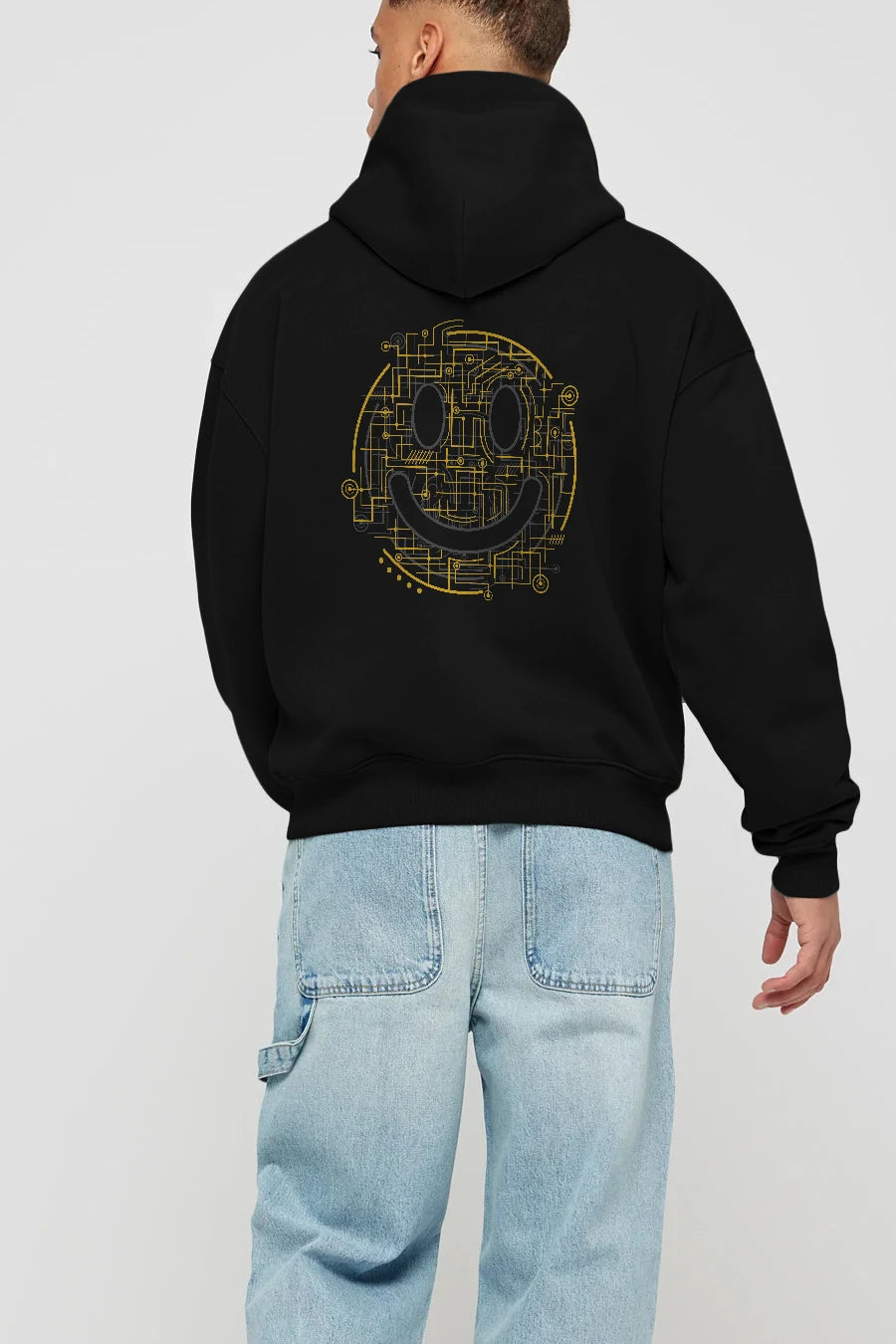 Electric Smiley Arka Baskılı Hoodie Oversize Kapüşonlu Sweatshirt Erkek Kadın Unisex