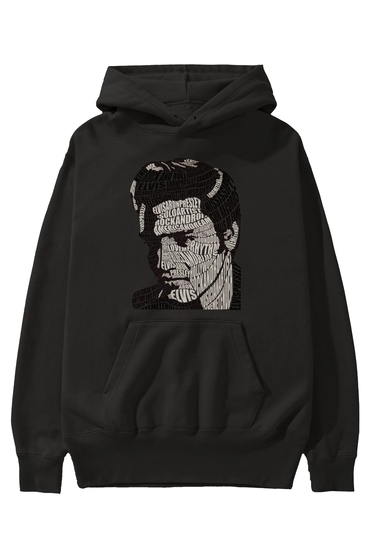 Elvis Presley Calligram Ön Baskılı Hoodie Oversize Kapüşonlu Sweatshirt Erkek Kadın Unisex
