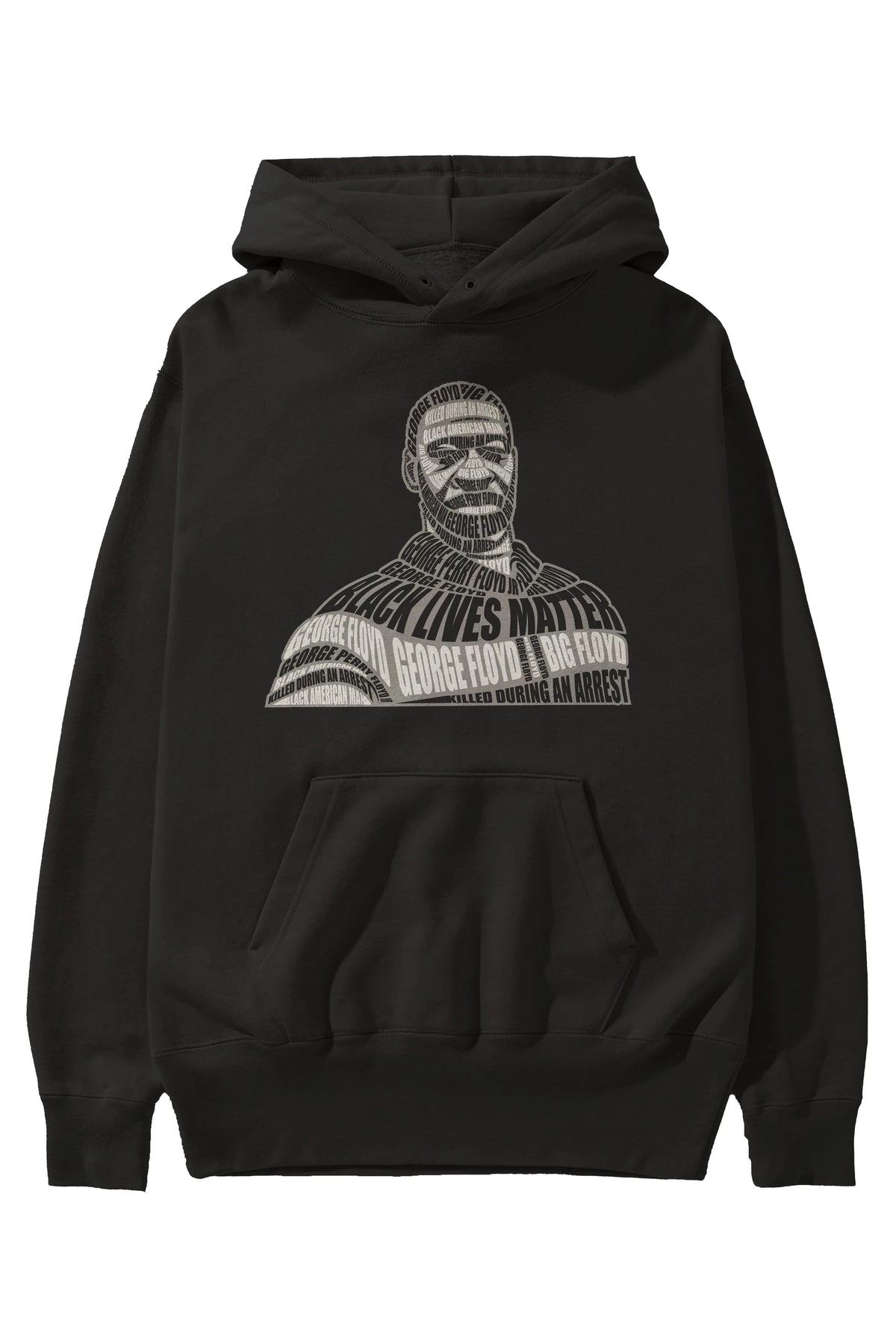 George Floyd Calligram Ön Baskılı Hoodie Oversize Kapüşonlu Sweatshirt Erkek Kadın Unisex
