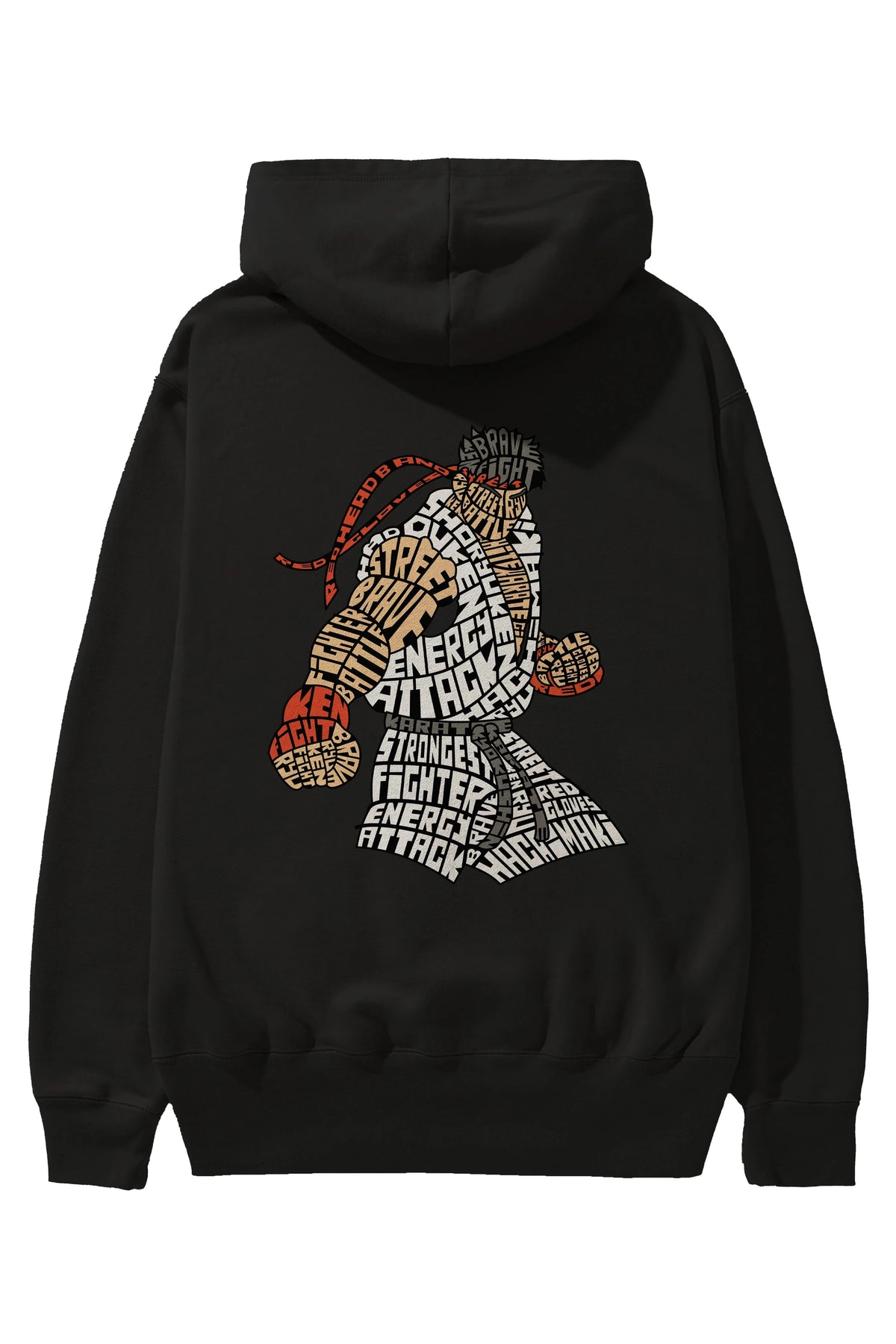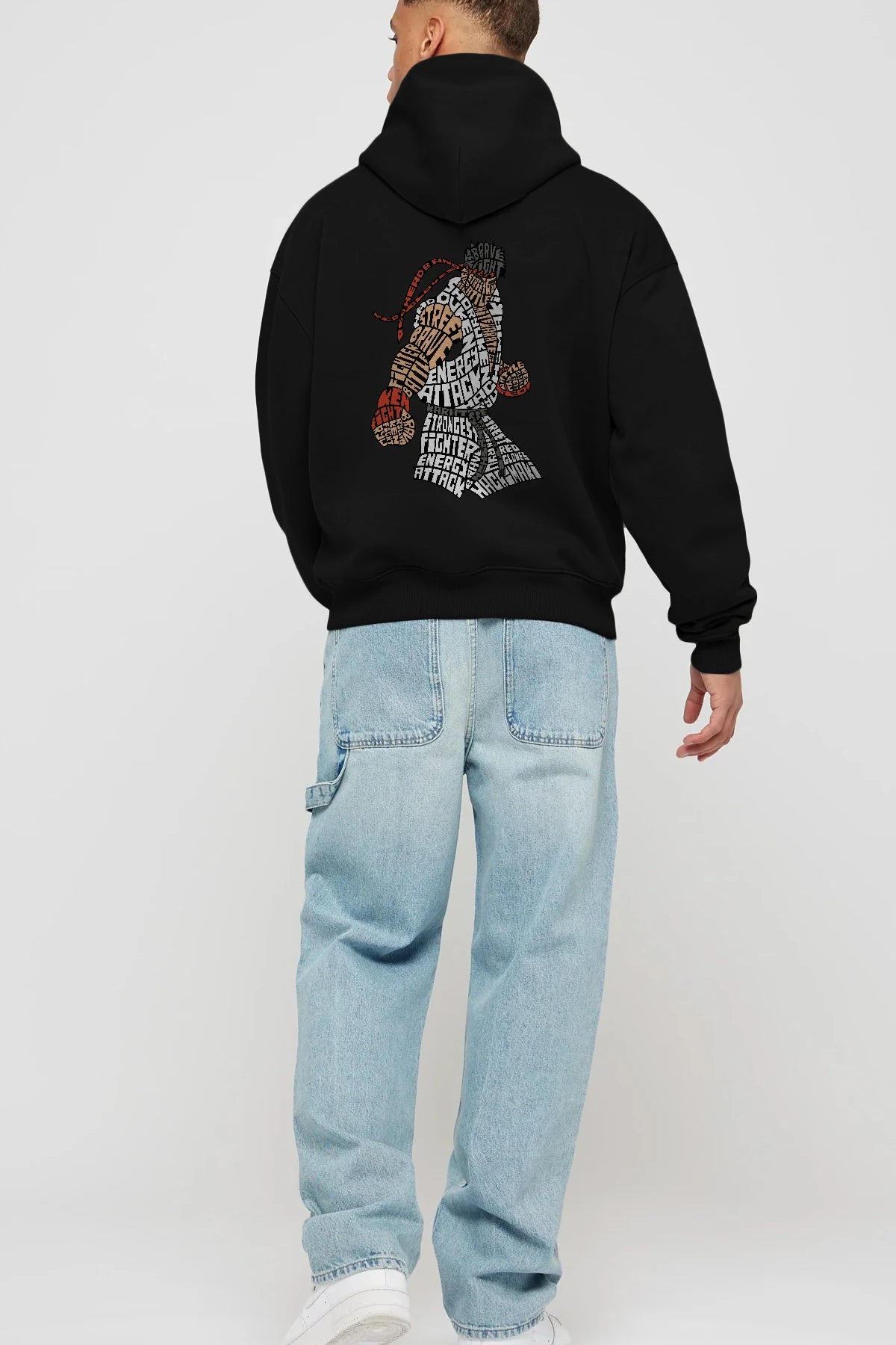 Hadouken Arka Baskılı Hoodie Oversize Kapüşonlu Sweatshirt Erkek Kadın Unisex