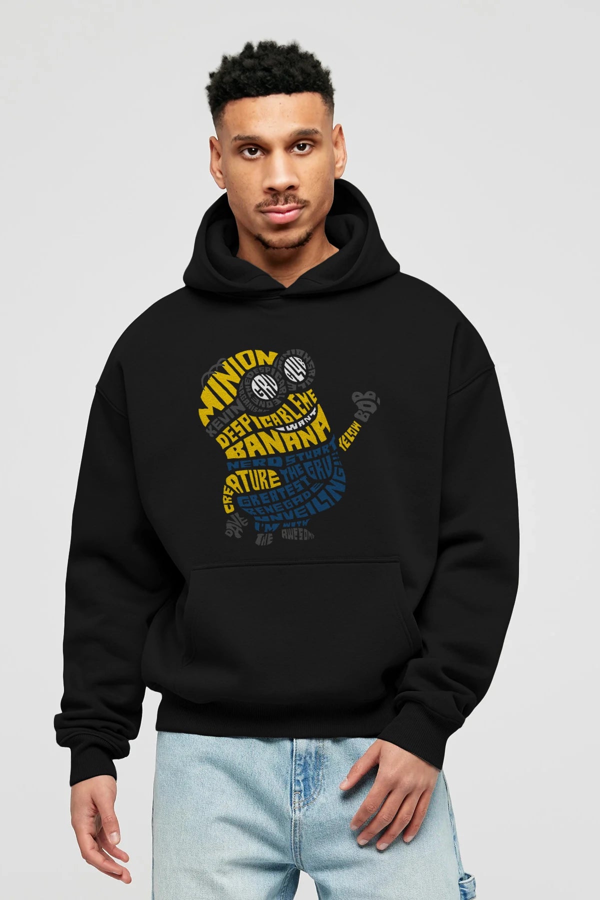 Minion Ön Baskılı Hoodie Oversize Kapüşonlu Sweatshirt Erkek Kadın Unisex