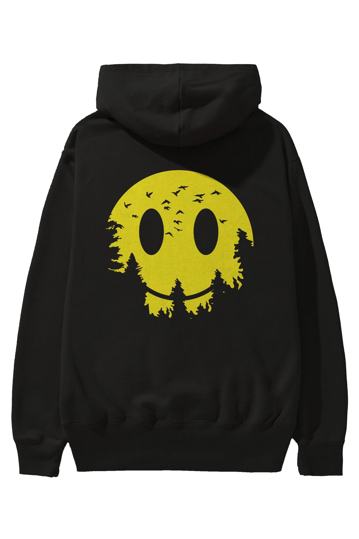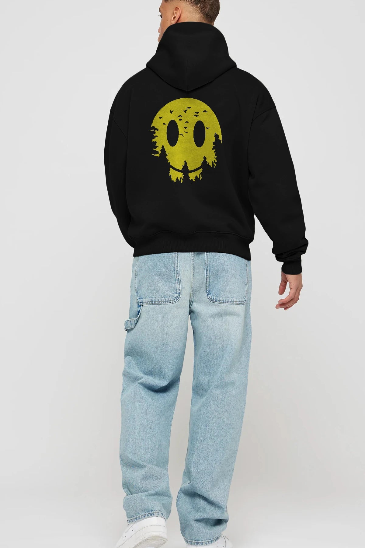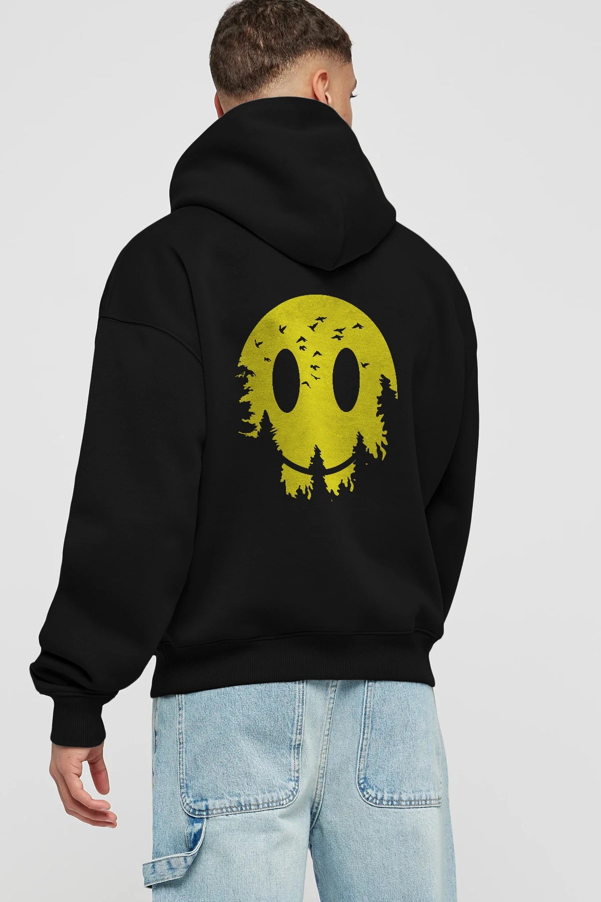 Smiley Moon Arka Baskılı Hoodie Oversize Kapüşonlu Sweatshirt Erkek Kadın Unisex