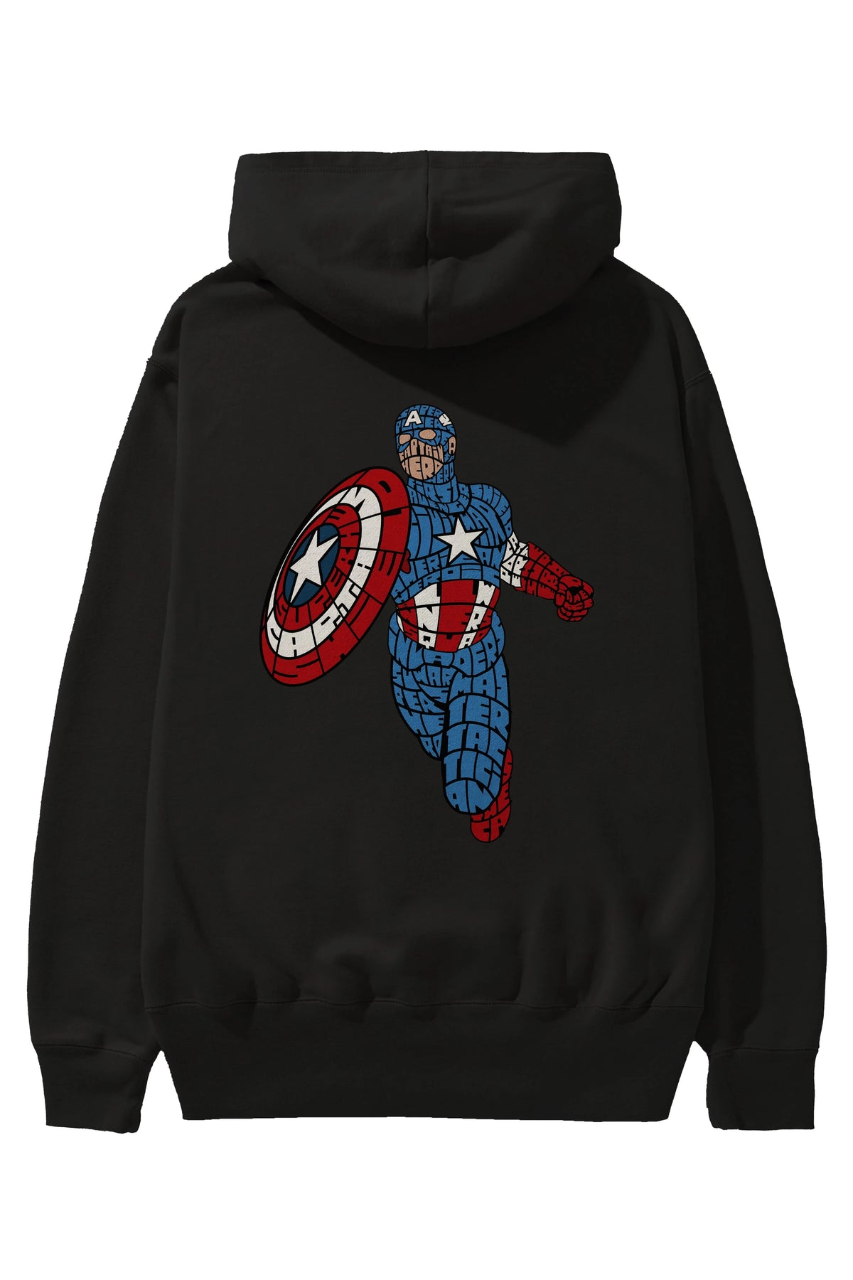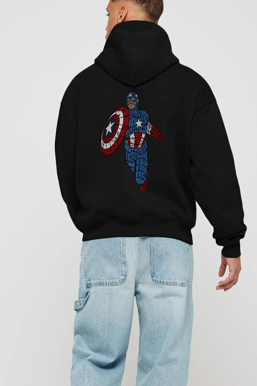 Star and Stripes Hero Arka Baskılı Hoodie Oversize Kapüşonlu Sweatshirt Erkek Kadın Unisex