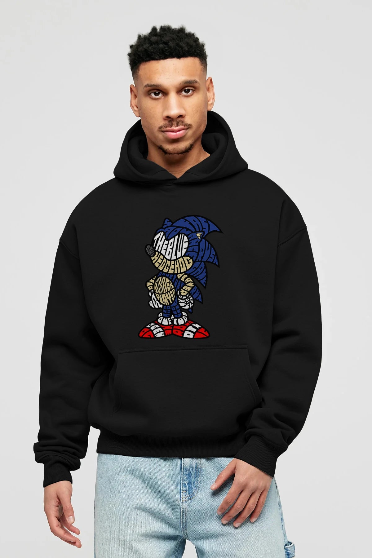 The Blue Hedgehog Ön Baskılı Hoodie Oversize Kapüşonlu Sweatshirt Erkek Kadın Unisex